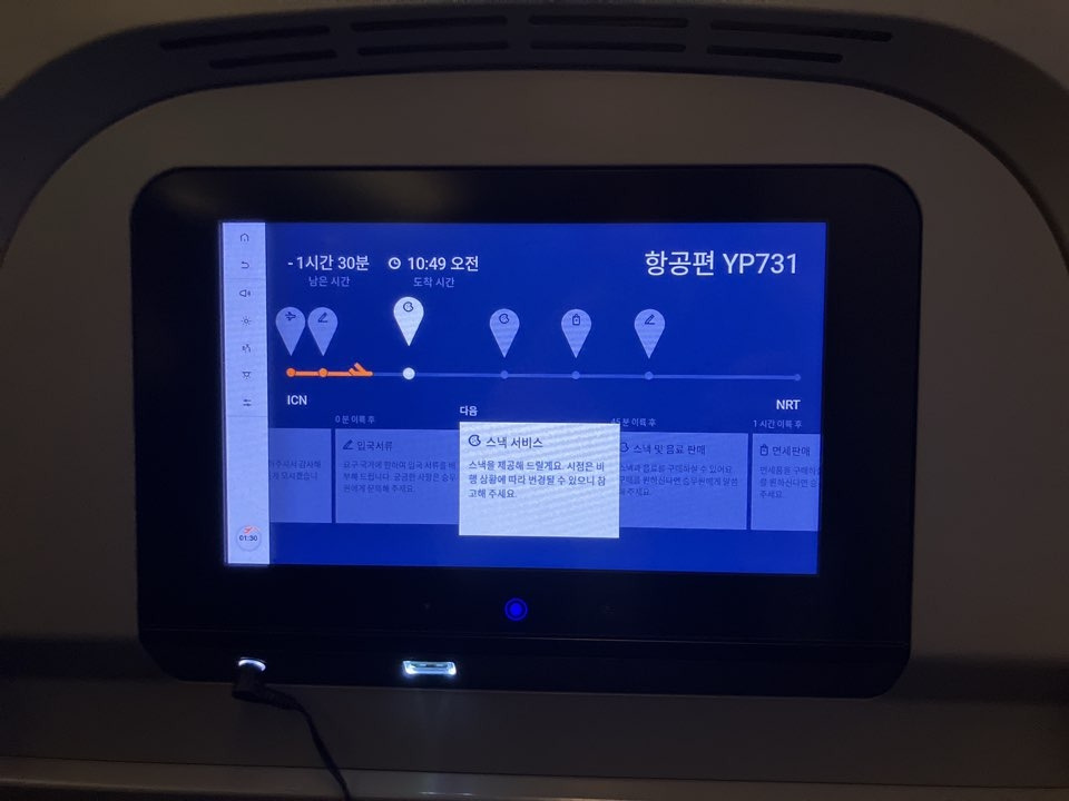 개인 모니터에는 볼거리들이 이것저것 있었는데, 특이하게도 전부 한국영화, 한국드라마, 한국예능들이었다. 종류도 아주 많은 건 아니었지만, 짧은 비행이었기 때문에 무료함을 달래기엔 충분하게 느껴졌다. 난 예능 한 편을 보다가 잠이 들었다가 비행 정보를 보다가 하면서 도쿄를 오갔다. 생긴 지 얼마 안된 항공사라서 그런지 비행기도 나름 깨끗했고, 개인 모니터의 디자인도, 인터페이스도 좋았다. 에어 프레미아에 장거리 노선들도 많다고 하던데, 다음에 기회가 되면 장거리 노선에도 도전해볼까 하는 생각이 들었다. 이상 에어 프레이마 후기 끝.