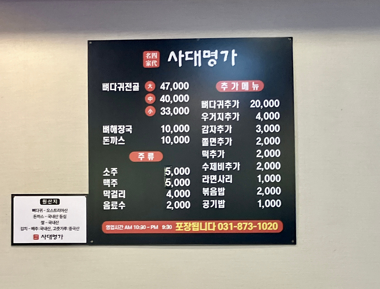 4월이 되었다. 그럼에도 불구하고 날씨가 봄이라기보다는 아직까지는 겨울 쪽에 조금 더 가까운 듯하다. 간혹 전형적인 봄 날씨인 때도 있긴 하지만, 뭐랄까 최근 유독 찬 바람이 불고 쌀쌀한 날이 많다. 지난 주말에 외출을 했을 때도 찬 바람이 너무 많이 불어서 길거리를 편하게 걸어다니기가 힘들 정도였던 것이다. 나름 추위에 대비한 옷차림으로 나갔다고 생각했는데, 막상 밖을 돌아다니다 보니 몸이 얼어붙는 느낌이 들기까지 했다. 따뜻한 집으로 바로 돌아가고도 싶었지만, 일단은 허기진 배부터 채우고 가야겠다는 생각이 들었다. 의정부 녹양역 인근에 있는 <사대명가>라는 식당을 찾았다. 날씨가 추웠으니 따뜻한 음식이 생각났고, 그렇다면 역시 국밥, 그리고 그 날은 국밥 중에서도 뼈다귀해장국이 땡기는 날이었다.