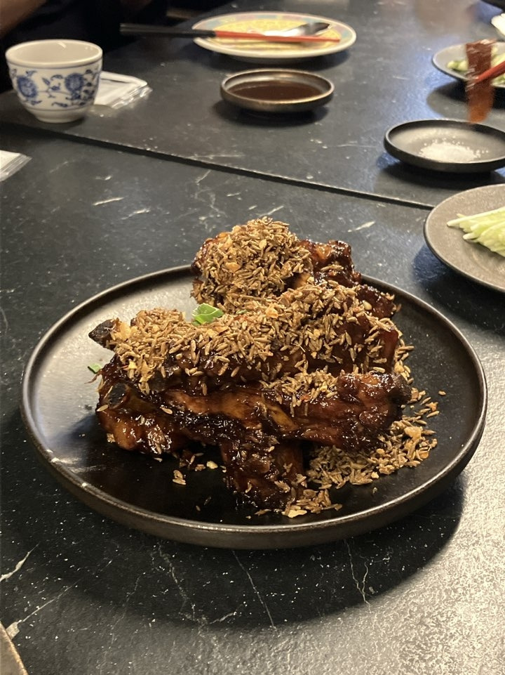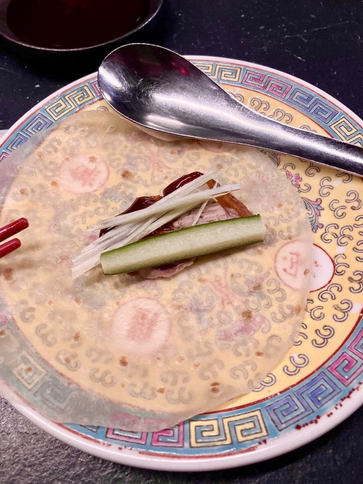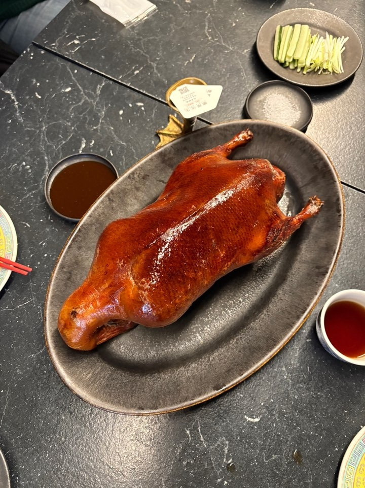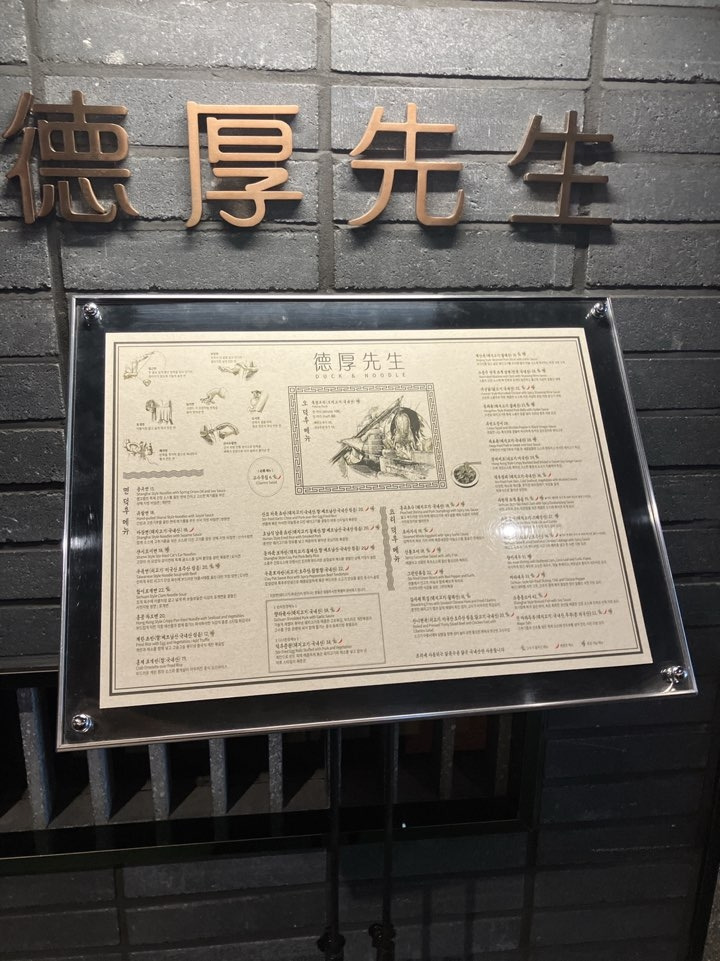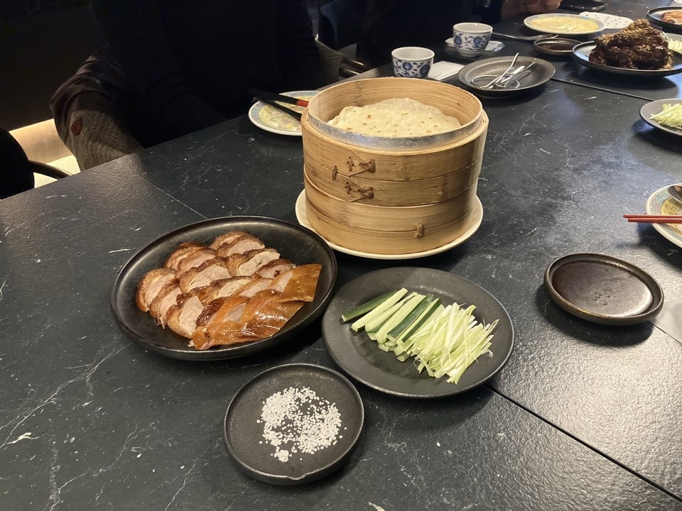 기다란 에스컬레이터를 타고 쭉 올라가면 차분한 분위기의 덕후선생을 만날 수 있는데, 어두운 컬러의 매장 분위기에 빨간 네온의 글자가 인상적이었다. 예약석으로 안내받은 자리에 앉아 먹고 싶은 메뉴들을 주문했다. 베이징덕을 제외한 요리와 면 종류의 메뉴를 주문하고 기다렸다. 먼저 예약주문을 한 베이징덕이 나오고, 사진을 찍으라고 한 마리를 통째로 내왔다.(베이징덕은 1마리에 10만원이고, 3-4인 기준이라고 했다.) 통오리의 사진을 다 찍자 다시 들고가서 카빙을 해서 조금씩 가져다 주었다. 예전에 뷔페에서 몇 점 먹어본 적은 있지만 베이징덕 한 마리를 제대로 먹어보는게 처음이었는데 껍질은 설탕을 찍어먹고, 살코기는 전병과 쌈을 싸서 먹으면 되었다. 다들 엄청 맛있다고 해서 엄청 기대를 하고 먹었는데 기대가 컸던 탓인지 엄청 맛있다 까지는 아니었다. 오리고기니까 당연히 맛은 있었지만 높은 기대에 부흥할 만큼은 아니었던 것이다.