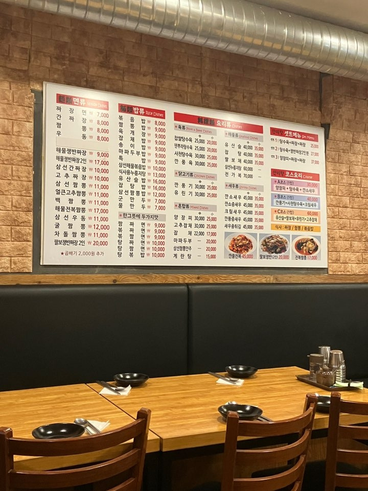 충무로역과 을지로3가역 사이에 위치한 인현시장 근처에는 많은 식당과 술집들이 모여있는데, 작고 오래된 식당들이 대부분이다. <만리향> 역시 그냥 지나치기 좋은, 좁은 골목에 위치해 있었다. 가게 안으로 들어서니 작은 입구와는 다르게 안쪽으로 깊숙하게 테이블들이 있었고, 본격적인 저녁 식사 시간이 아니라서 빈 자리는 많았다. 자리를 잡고 메뉴판을 보니 여느 중국음식점과 다르지 않았지만, 이 날따라 먹고 싶은 메뉴들이 많았다. 시간 여유가 없고 서둘러야 한다는 생각에 더더욱 느긋하게 이것저것 먹고 싶었는지도 모르겠다. 술 한 잔과 요리의 유혹을 간신히 이겨내고 간짜장(8,000원) 한 그릇과 탕짜면(10,000원) 한 그릇을 주문했다.