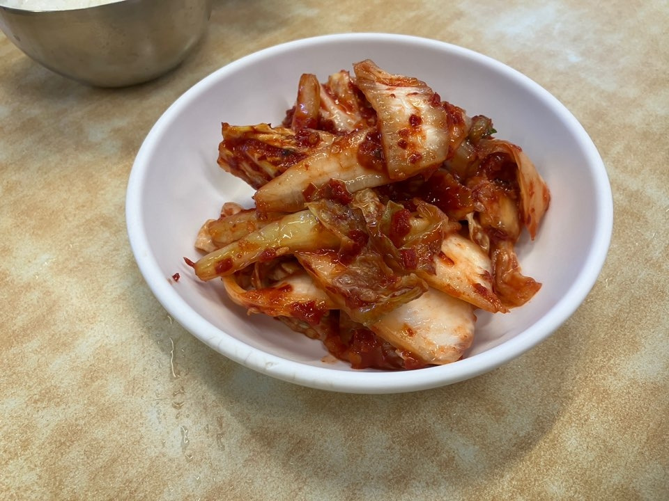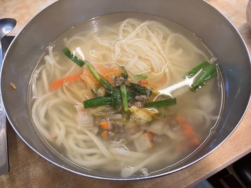 같이 간 동료는 만둣국(10,000원)을 주문했는데 만둣국엔 큼지막한 만두 5개가 들어있었고, 칼국수는 탁한 느낌의 국물에 약간 얇은 면이 가득 담겨있었다. 칼국수 면이 얇은 편이라 먹기에 굉장히 편했고, 국물도 적당히 진하고 적당히 가벼워서 후루룩 편하게 먹을 수 있었다. 곁들여먹는 반찬은 김치 한 가지 뿐이었지만 김치가 맛있어서 부족하다는 생각이 들진 않았다. 그리고 혹시 양이 부족해서 배가 부르지 않을까봐 작은 공깃밥이 함께 나왔는데, 밥과 김치만 같이 먹어도 충분히 맛이 있었다.