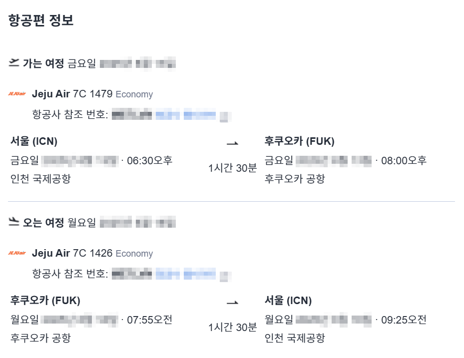 제주항공 후쿠오카행(7C 1479편, 7C 1426편) 비행정보