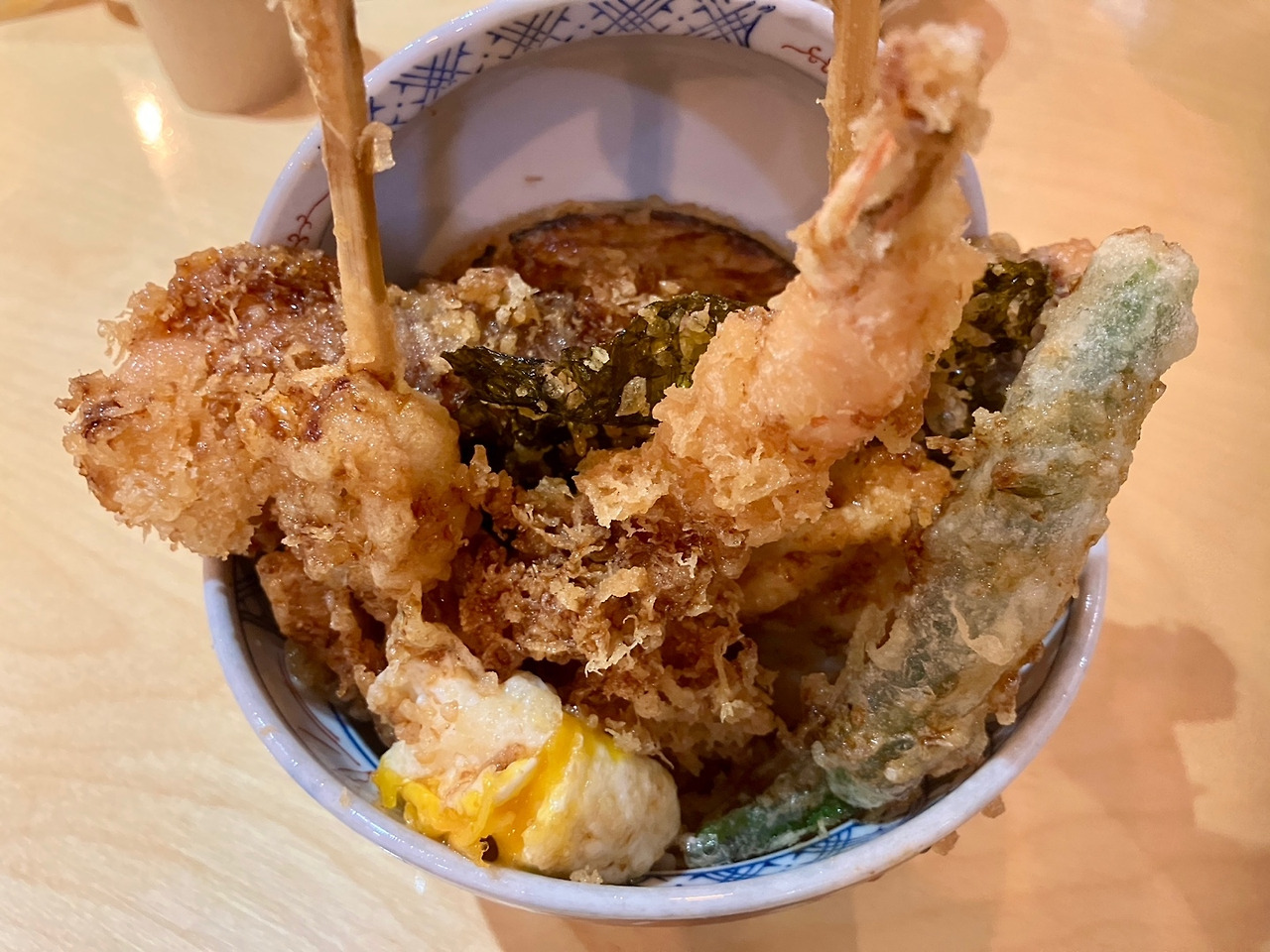 회사를 다니면 점심을 사 먹을 일이 평소보다 많아질 수밖에 없다. 그래서 점심에 뭘 먹지?라는 생각을 많이 하게 되는데, 나는 될 수 있으면 집에서 요리하기 힘든 메뉴를 사 먹으려고 한다. 맛있게 요리하기 힘든 한식이나 집에서 요리하기에 번거로워서 사 먹는 게 좋은 그런 메뉴들. 그중에서 오늘은 텐동을 골랐다. 튀김을 집에서 요리하자면 기름을 많이 써야 하는 데다가 맛있게 튀기기 힘들기 때문에 웬만하면 사 먹는 게 훨씬 나은 음식이기 때문이다.