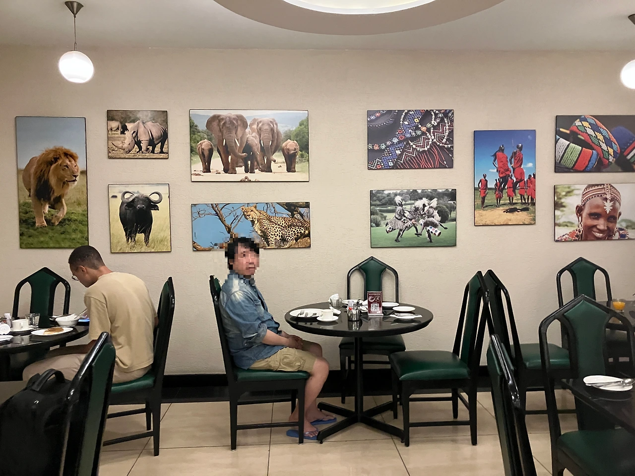 이후부터 호텔 체크인은 정말 수월하게 이루어졌다. 친절한 직원들의 환대를 받으며 예약한 방으로 안내를 받았다. 내가 배정받은 방은 꽤 넓어서 지내기 불편하지 않았으나, 다만 제법 오래된 모양인지 시설은 다소 낡은 편이었다. 그래도 어메니티를 비롯해 냉장고까지 있을 건 다 있고, 침대도 정말 편안해서 긴 비행의 피로를 풀기에도 좋았다. 조식은 1층 레스토랑에서 먹을 수 있었는데 뷔페식이라 자유롭게 즐길 수 있었다. 음식은 매일 조금씩 바뀌었고, 현지식과 서양식 모두 다양하게 준비되어 있어서 좋았다. 그 중에서 가장 인상적이었던 것은 무엇보다도 단연 커피. 케냐 AA의 나라라 그런지 커피가 굉장히 맛있어서 이른 아침부터 2잔씩 마시게 되었다.