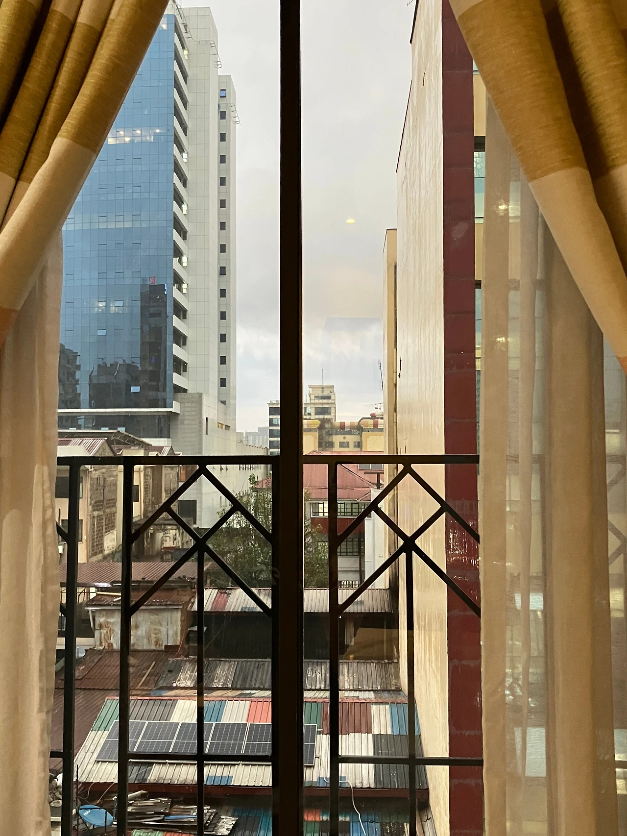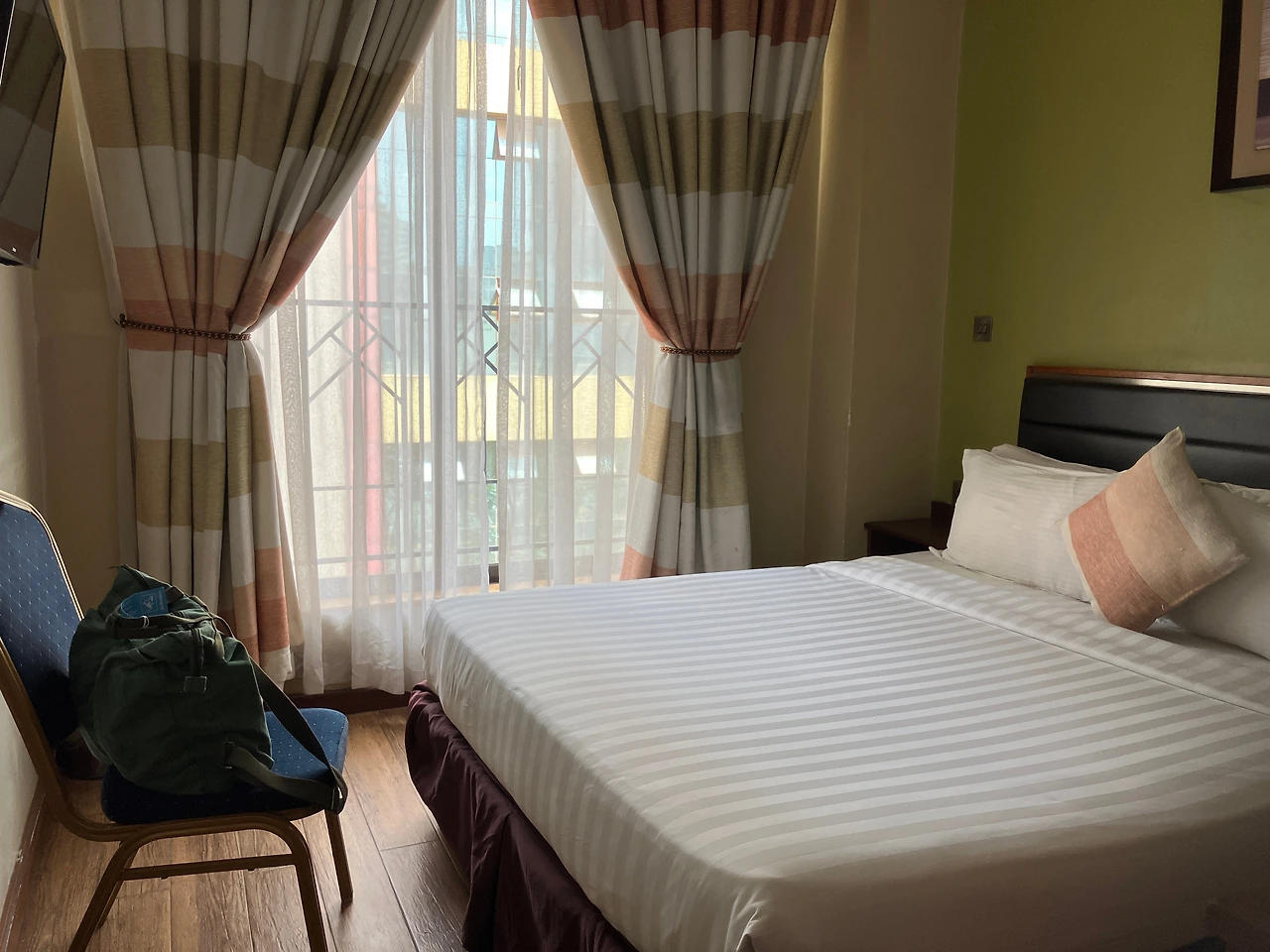 이 호텔도 웹사이트의 호텔 소개 사진은 엄청 고급진 느낌이었으나 실제로는 시설이 꽤 낡은 곳이었다. 처음 방에 들어갔을 때 예전에 유럽 어느 도시에서인가 묵었던 낡은 호텔이 생각나기도 해서 조금 반가운 마음이 들기도 했다. 낡은 시설이긴 했어도 12시쯤 이른 체크인을 해주었고(원래는 오후 2시 체크인), 가격도 1박에 6만 원 정도였으니 그 정도에 만족하기로 했다.(냉장고 없음, 어메니티는 있음) 방은 더블침대 하나만으로 가득 찰 정도로 작았지만 욕실은 또 그렇게까지 좁지는 않았다. 그리고 <Best Western Meridian Hotel>에서 묵었던 방과는 다르게 바깥으로 나이로비 시내가 훤히 보이는 전망이라서 탁 트인 기분이 들었다.