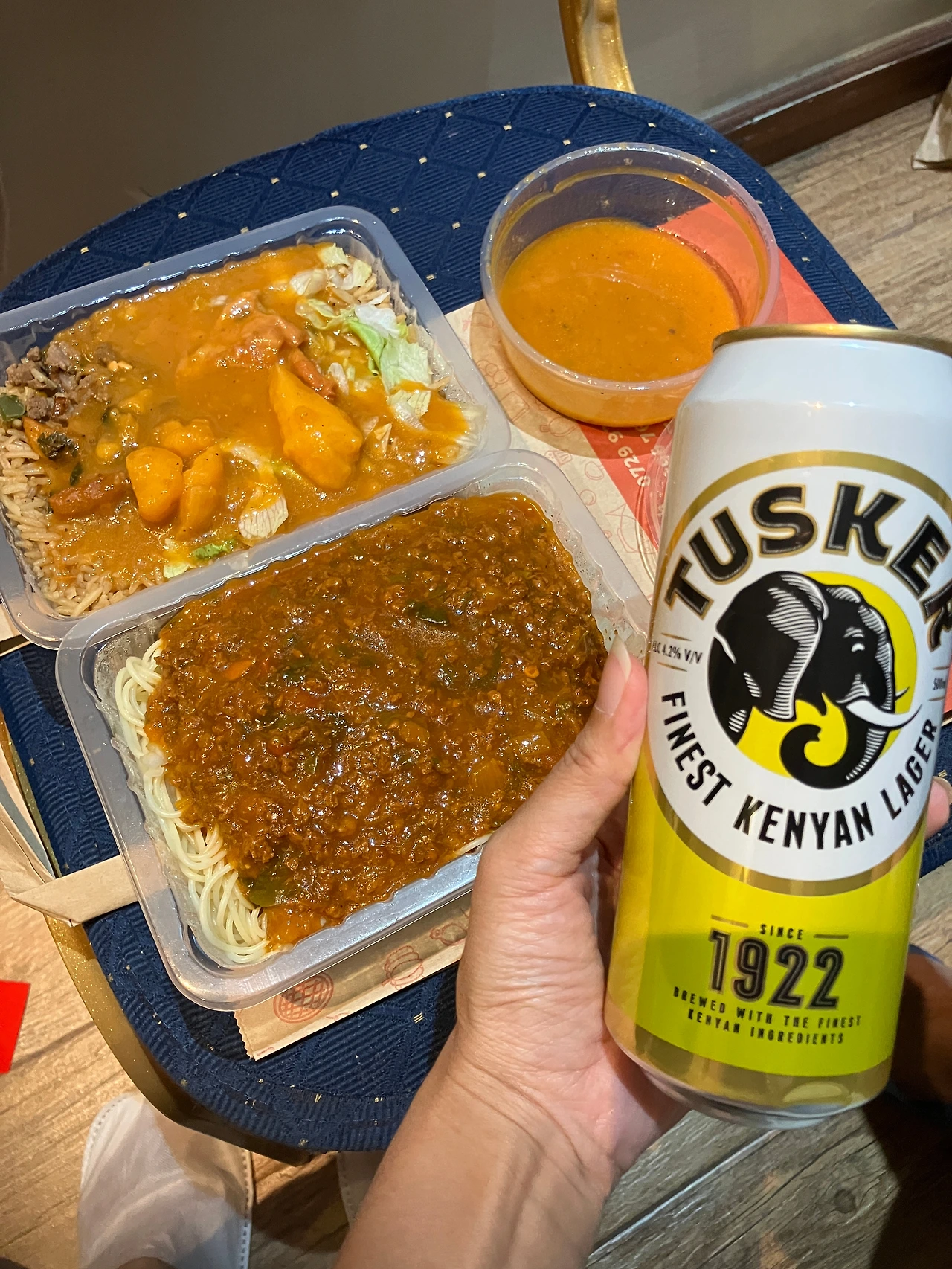 짐을 대충 풀고는 침대에 누웠다. 그리고 큰 창문을 통해 보이는 바깥 하늘을 구경했다. 멍 때리는 시간이 좀 지나자 배가 고파졌고, 따라서 뭐라도 먹으러 나가야 했지만 귀찮아져서 이번에는 배달을 시켜보기로 했다. 배달 어플을 만지작거리며 뭐가 적당할지 찾았고, 근처에 있는 평점이 꽤 높은 식당에서 든든한 탄수화물 식단으로 주문을 했다. 음식은 가드가 지켜주고 있는 입구 안쪽의 1층 로비에서 배달원을 만나 음식을 받아 들고 올라오면 되는데, 어플에 뜨는 배달원의 이름을 잘 기억해뒀다가 이름을 확인하면서 배달품을 받으면 된다. 방에 돌아와 음식을 먹으려는 순간, 갑자기 밖에서 비가 쏟아졌다. 한 달 평균 강수일이 6일이라고 하니 비를 만날 수도 있겠지만, 아직 나이로비는 건기의 끝자락이어서 갑작스럽게 내리는 비가 의외라는 생각이 들었다. 비가 조금 내리다가 그치려니 했지만, 점점 비가 많이 오기 시작하더니 이윽고 거센 돌풍을 동반한 폭풍우가 몰아치기 시작하고 길거리 사람들은 서둘러 각자의 집으로 돌아가는 모습이 보였다. 우리는 조용해진 거리에 쏟아지는 세찬 빗소리를 음악삼아 들으며 저녁식사를 했다.