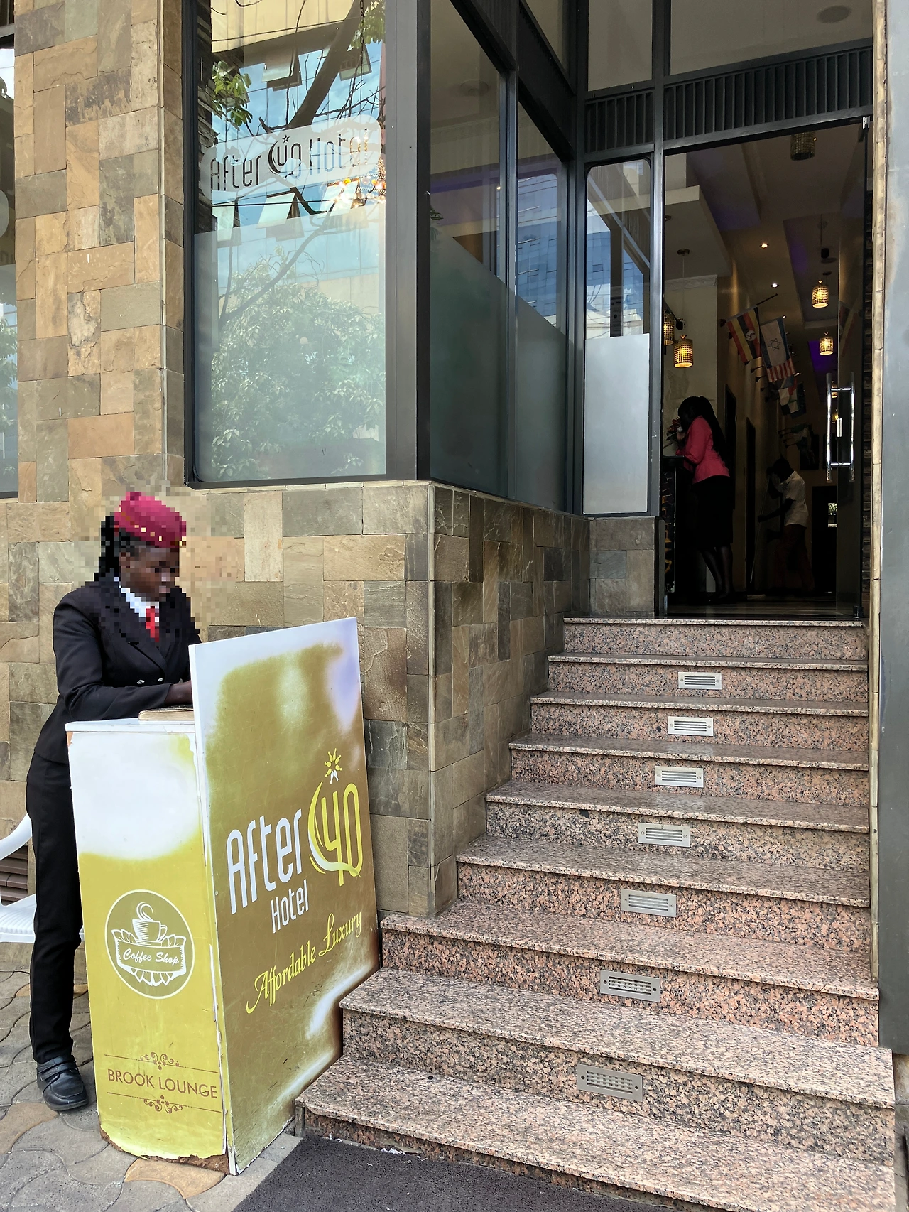 처음 생각했던 일정은 나이로비에서의 첫 숙소인 <Best Western Meridian Hotel>에서 이틀을 지내고 나서 바로 탄자니아의 모시로 넘어가는 것이었다. (https://brunch.co.kr/@minigorae/763)하지만 지내다 보니 나이로비에서 조금 더 머무는 것도 괜찮다는 생각이 들어서 급하게 하루를 더 머물기로 계획을 수정하고 근처 호텔들을 찾아보기 시작했다. 1박에 10만 원 가까이하는 호텔에 더 있기엔 좀 부담스러웠고, 어느 정도 나이로비 분위기에 적응도 했으니 다른 호텔로 옮겨도 괜찮다는 생각이 들었기 때문이다. 당장 머물 곳을 찾아야 하는 것이다 보니 <Best Western Meridian Hotel>에서 가까운 것이 좋겠다 싶었고, 기왕이면 나이로비에서 모시로 넘어가는 여행사가 가까이에 있으면 좋겠다 싶었다. 그래서 결정한 숙소는 나이로비에 있는 <After 40 Hotel>이다.