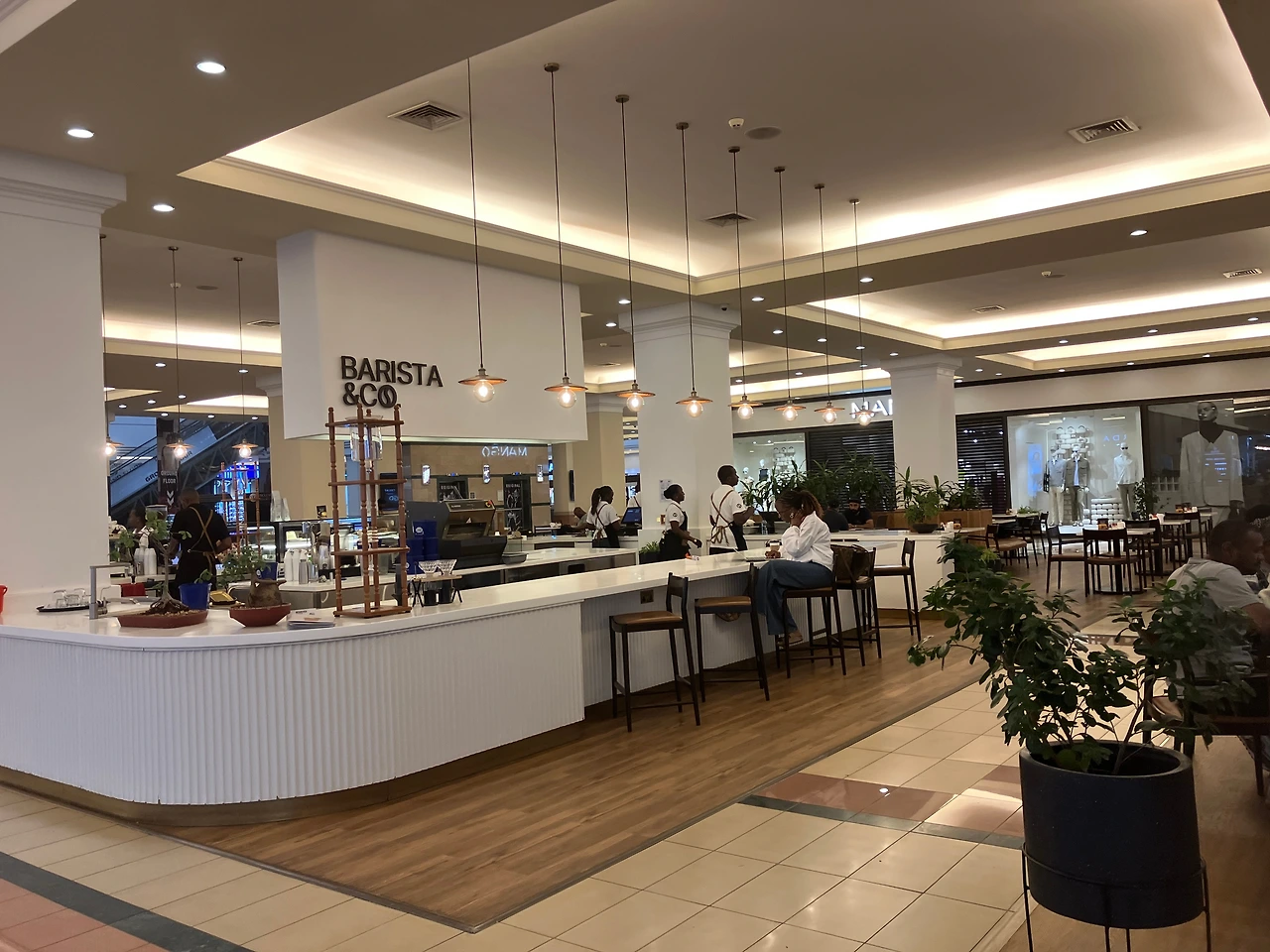내가 마지막으로 나이로비에서 선택한 카페는 <Barista & Co.>. 웨스트게이트 쇼핑몰 2층 중앙에 오픈 카페로 되어 있어서 눈에 잘 띄는 곳이었다. 웨스트게이트 쇼핑몰이 나이로비에서 내가 간 쇼핑몰 중 빌리지마켓과 더불어 가장 깔끔하고 고급스러운 분위기였는데, 빌리지마켓이 좀 산만한 아웃렛 느낌이었다면 반면에 웨스트게이트 쇼핑몰은 현대식 백화점 느낌이 강한 곳이었다.
