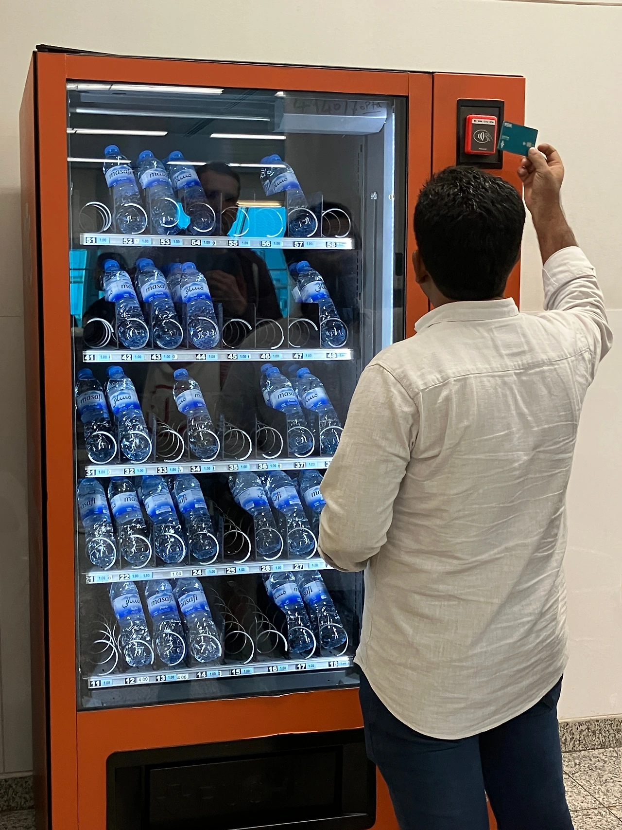 방콕으로 돌아갈 때는 푸드코트와 면세점이 모여있는 곳에서 기다리다가 보딩 시간이 다가오면 게이트 쪽으로 들어가는데 그때도 다시 한번 짐 검사를 한다. 혼잡하고 정신이 없었지만 게이트 앞은 그래도 여유가 있다. 내가 갔덩 게이트쪽에는 푸드코트나 면세점 보다 더 저렴한 간이식당들이 있어서, 끼니를 때우거나 물이나 음료를 구입하기 좋아 보였다. 그리고 간혹 물만 판매하는 자판기가 있는데, 여기서는 1 디르함(약 400원)으로 생수를 구매할 수 있다. 간이식당이나 매점에서 파는 것보다 훨씬 저렴하고, 애초에 짐 검사할 때 액체류 반입 금지 때문에 식수를 구하는 것도 중요한 문제라서, 이 자판기가 우리에게 큰 힘이 되어 주었다. 우리는 자판기에서 산 물 하나를 홀짝 거리며 비행기에 올랐다.