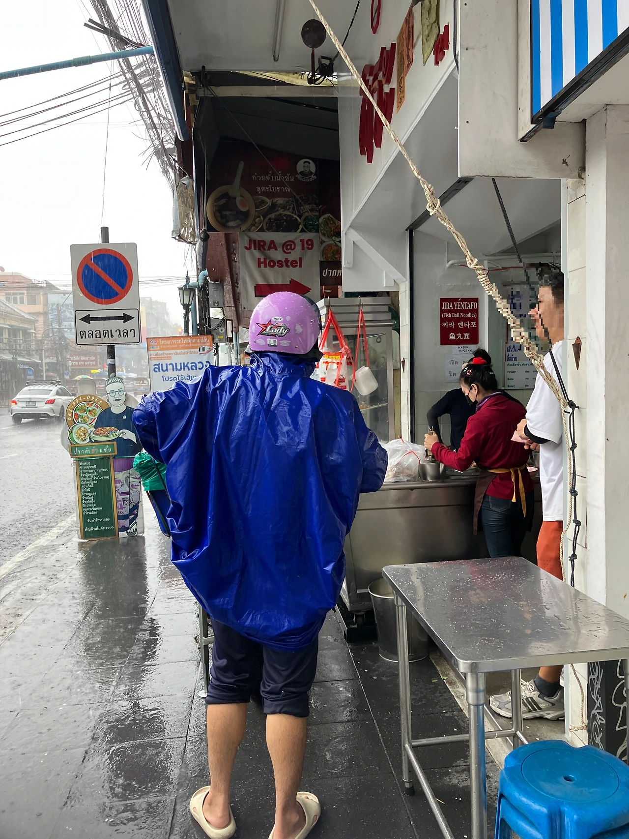 숙소로 돌아가는 길, 카오산에서 유명한 어묵국수 집인 <찌라옌타포>가 보여서 후다닥 들어갔다. 국수 두 개(작은 사이즈 60바트, 큰 사이즈 70바트)를 주문하고 주위를 둘러보니, 손님이라곤 우리 밖에 없다. 평소였다면 손님들로 가득했겠지만 비가 이렇게나 많이 오는 날에는 아무도 밖에 나오지 않겠지. 금방 주문한 어묵국수가 나오고, 따뜻한 국물과 함께 면발을 후루룩 먹었더니 비에 젖어 차가워진 몸이 따뜻하게 녹기 시작했다. 국수를 다 먹어갈 때쯤 가게 안이 분주해지더니, 우리에게 한 명이 와서는 추가로 주문할 게 있냐고 물었다. 추가로 주문할 것 없다고 하고는 주위를 둘러보니 직원들이 가게를 정리하고 있는 것이 아닌가. 비가 이렇게 많이 오니 오늘 장사는 끝이라고 생각했던 모양이다.