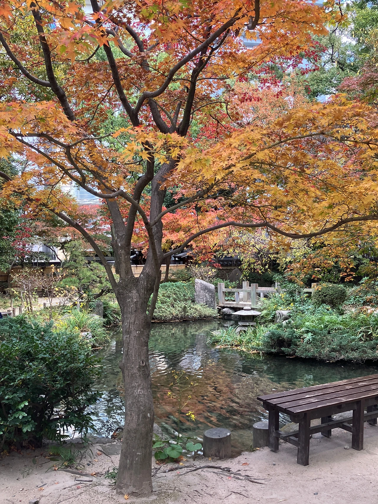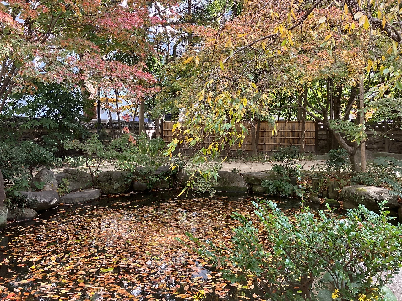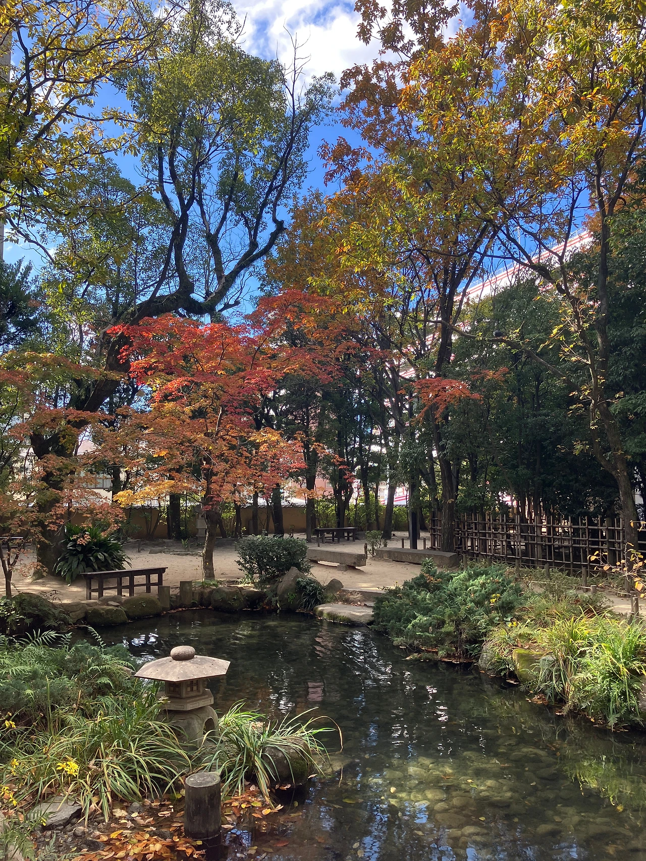 특히 한국에서는 나뭇가지가 앙상해지는 12월임에도 이곳의 정원에는 여전히 단풍이 아름답게 물들어 있어서 무척이나 좋았다. 작은 폭포(?)도 있어서 정원 벤치에 앉아서 물소리를 들으며 힐링하기에도 좋았다. 가장 좋은 것은 하카타역에서 10분 정도 떨어져 있는 위치이다. 여행 동선을 짜기에도 가깝고, 입장료도 100엔이라 전혀 부담스럽지 않다. 그 옆에 있는 <스미요시 신사(住吉神社)>와 묶어서 가니, 일본의 고유한 문화를 느끼는 기분을 한껏 누릴 수 있었다. 한입 교자집으로 유명한 <하카타교자 유신(博多餃子 游心)>도 바로 근처에 있다.