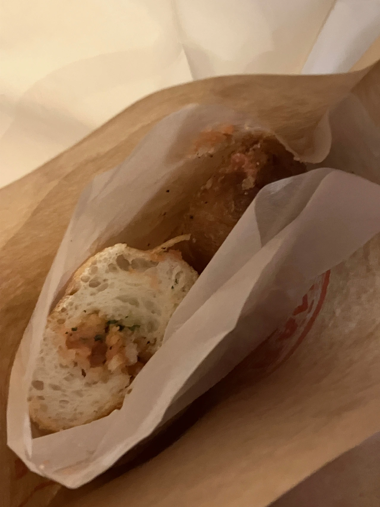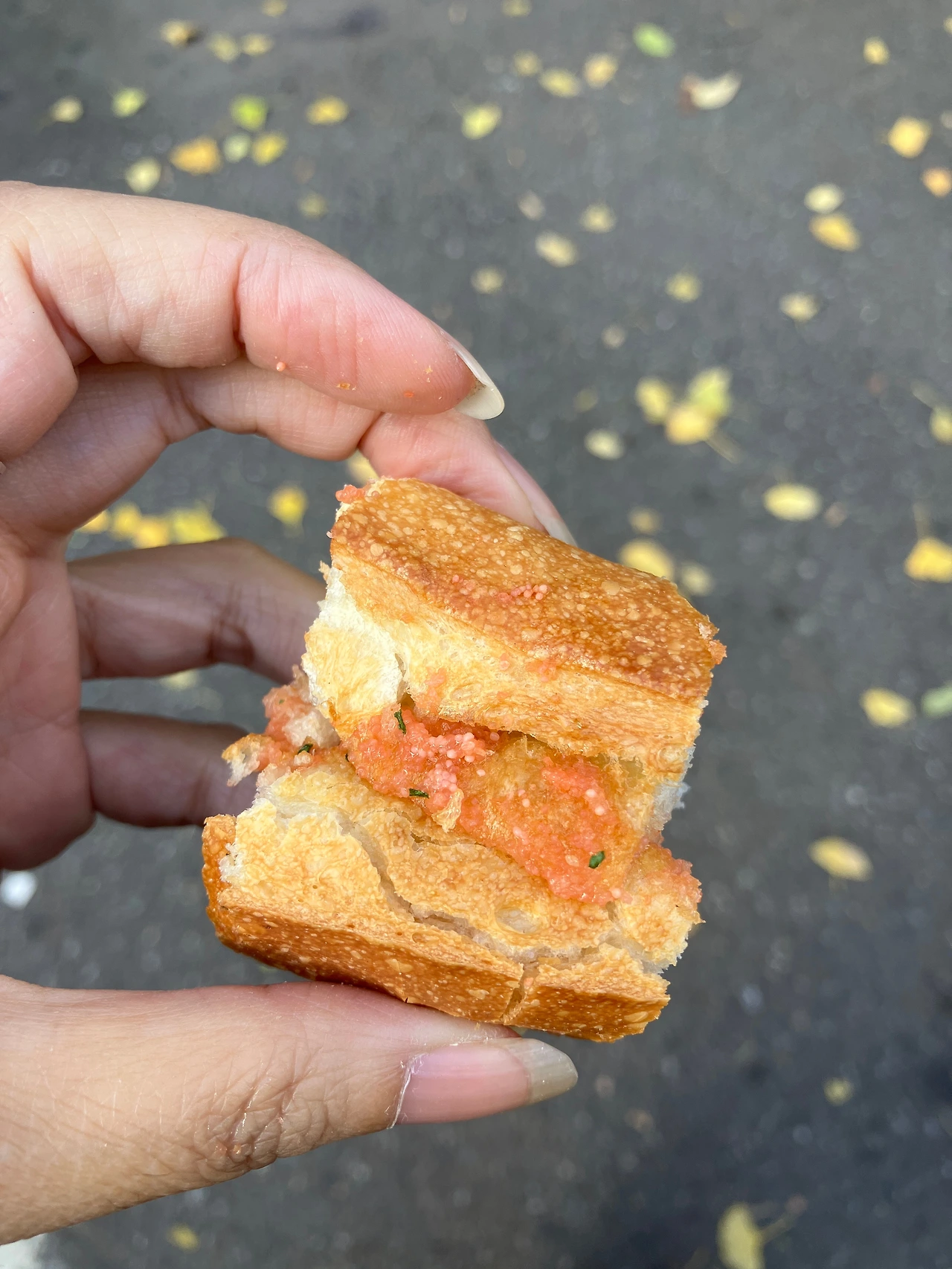 내가 '명란 바게트'를 주문할 차례가 되었을 때, 마침 다 구워진 빵이 없어서 10분 정도 더 기다려야 했다. 하지만 고작 10분 정도 더 기다려서 갓 구운 빵을 먹을 수 있다면 언제나 대환영이니까 기쁜 마음으로 오케이! 그리고 10분 후 나는 따끈따끈 갓 구워져 나온 '명란 바게트'를 맛볼 수 있었다. 일단 어떤 빵이든 갓 구운 빵은 더 이상 말이 필요 없는 맛! 거기다 명란이 바게트 사이에 가득 들어있어서 굉장한 감칠맛! 계속 손이 가는 맛이랄까? 친구들이랑 한 개를 그 자리에서 순삭하고, 따로 포장한 '명란 바게트'는 한국까지 가져와서 오븐에 데워 먹었다. 데워 먹어도 맛 자체는 크게 달라지지 않았지만, 역시 그 자리에서 갓 나온 '명란 바게트'의 맛이 단연 최고였다. 아! 얼그레이 스콘과 말차 스콘도 각각 홍차와 말차향이 많이 나고 달지 않아 맛있었다.
