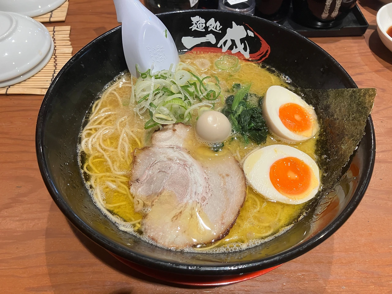 하카타 라멘은 하카타 지역에서 유래한 돈코츠(돼지뼈) 라멘으로, 진한 돼지뼈 국물이 특징이다. 후쿠오카 3대 라멘로 손꼽히는 이치란, 잇푸도, 신신라멘의 경우에는 이미 여행자 사이에서도 무척 유명하다. 이번에 내가 찾아간 라멘집은 숙소에서 멀지 않은 곳에 있었던 <이치나리 스미요시점(麺処 一成 住吉店)>이다. <이치나리>도 후쿠오카 시내에 지점이 3개 정도 있는 걸 보면 나름 유명한 라멘집인 모양이다. 점심시간 직전이라 웨이팅은 없었지만 그럼에도 가게 안은 이미 손님들로 가득했던 것이다.