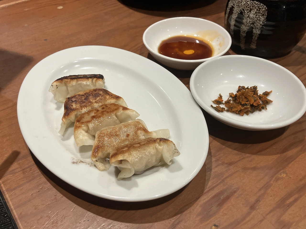 돈코츠 라멘은 국물이 진했지만 느끼한 맛이 없다. 돈코츠 라멘을 처음 먹는 사람에게도 거부감이 없을 것 같았다. 그리고 매운 차슈멘은 이름에는 맵다고는 했지만 한국인 기분에는 솔직히 그리 맵지는 않았다. 추가로 주문한 교자(5개)는 후쿠오카에서 유명한 한입 교자 사이즈라서 가볍게 먹기 좋았다. 그리고 작은 사이즈로 나온 볶음밥은 밥알 하나하나 잘 코팅이 되어 잘 볶아진 볶음밥이라는 것을 알 수 있었다. 우리가 한국인이라는 알아챈 직원이, 중간중간 한국어로 말해주어서 편하게 식사를 할 수 있었다.
