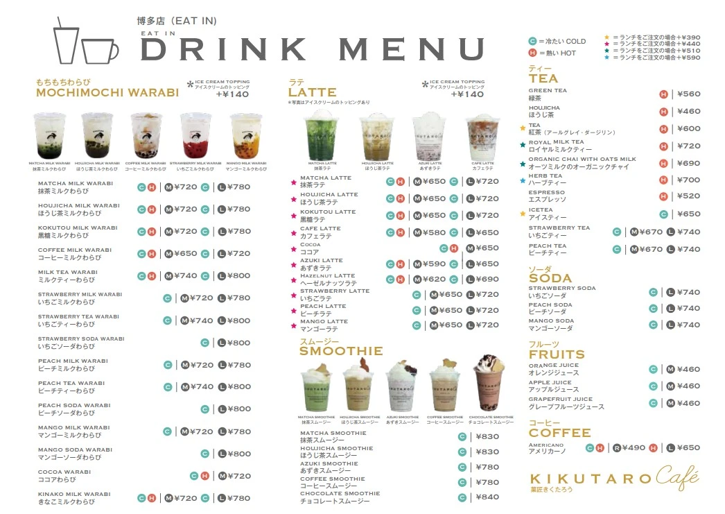 하카타역 앞을 지나가다가 우연히 일본 느낌이 물씬 풍기는 디저트들이 진열되어 있는 것을 봤다. 고개를 들어 간판을 보니, <Kikutaro(키쿠타로)>라고 쓰여 있었다. 깔끔한 외관과 내부, 그리고 맛있어 보이는 디저트들. 이미 식사를 해서 배는 부르지만 그냥 지나칠 수가 없다. 디저트 배는 따로 있으니까 일단 가게 안으로 들어갔다. 가게 안으로 들어갔으나 이미 만석이라서 웨이팅을 해야만 했다. 하지만 오래 걸리지는 않을 것 같아 잠시 기다리기로 했다. 다행히 금세 좌석을 안내해 주었다. 아마도 빈 테이블이 있었지만 손님이 나간 자리를 치우느라 잠시 기다려 달라고 그랬던 모양이다.