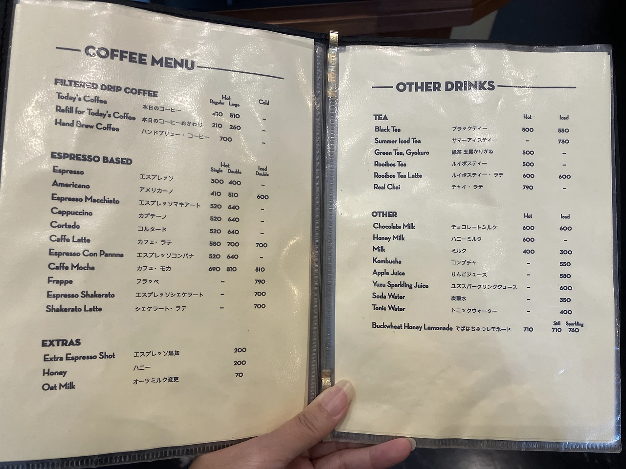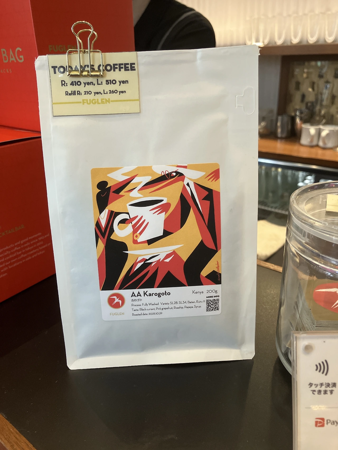 워낙 유명한 카페라서 혹시 사람이 많지 않을까 걱정을 하며 카페를 찾았다. 사람이 제법 있었지만 다행히 웨이팅을 할 정도는 아니라서 창가에 자리를 잡고 커피를 주문했다. 여기에는 다양한 음료와 베이커리 메뉴들이 있다. 내가 주문을 한 건 따뜻한 오늘의 커피(410엔, 카드결제 가능)였다. 마침 '오늘의 커피' 원두가 공교롭게도 얼마 전 다녀온 케냐 커피였다. 반가운 마음에 다른 메뉴를 주문할 생각조차 하지 않았다. 오늘의 커피는 한꺼번에 많이 내려두고 주문 즉시 커피 잔에 따라서 계산과 함께 건네주었다.
