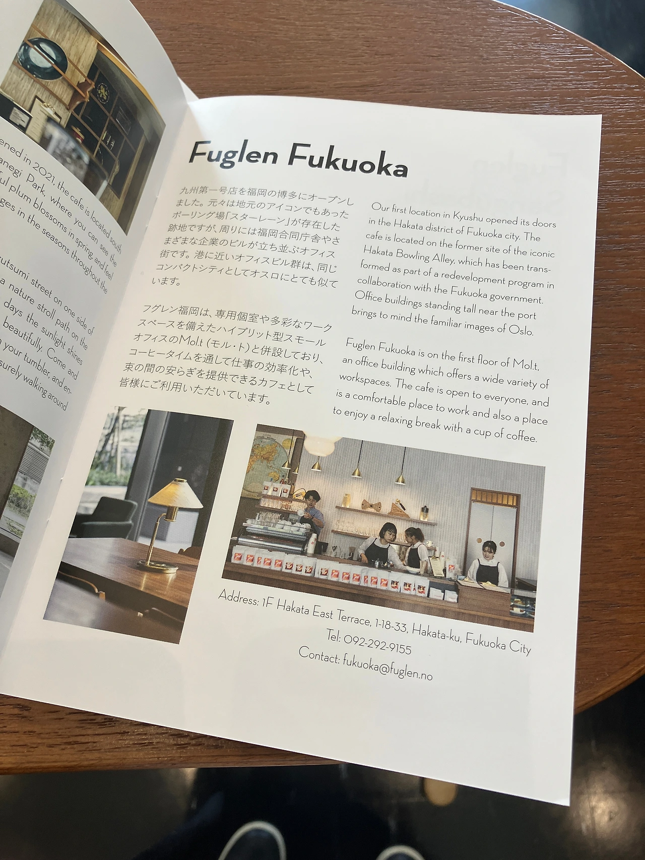 <푸글렌>은 노르웨이어로 '새'를 뜻한다. 1963년에 생긴 노르웨이의 스페셜티 전문 커피 체인점이라고 하며, 오슬로가 본점이고, 노르웨이를 비롯해서 한국, 일본, 인도네시아에 매장이 있다고 한다. 나는 코로나가 끝난 직후 노르웨이 여행에서 처음 <푸글렌> 카페를 가보게 되었다. 오슬로를 여행했던 당시가 여름이라서 카페 앞 야외 좌석에서 느긋하게 맛있는 커피를 즐겼던 좋은 기억을 가지고 있는데, 마침 후쿠오카에도 <푸글렌> 지점이 있다고 해서 찾아가 보기로 한 것이었다.