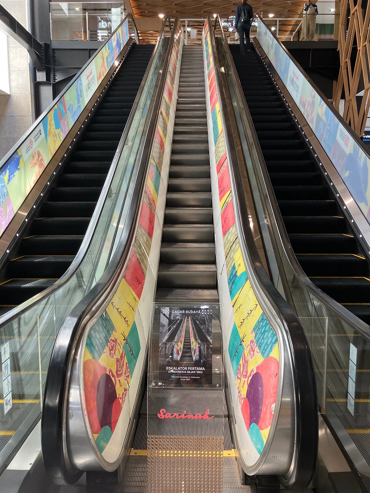 자카르타 최초의 쇼핑몰이라는 사리나(Sarinah) 몰이 마침 숙소 바로 근처에 있어서, 더위도 피할 겸 구경도 할 겸 종종 들어가게 되었다. 사리나 몰에는 유명한 것이 하나 있었는데, 그것은 바로 에스컬레이터이다. 1966년 인도네시아 최초의 현대식 백화점으로 개장한 사리나 몰에 설치된 에스컬레이터는 인도네시아 전역에서 최초로 도입된 에스컬레이터였다. 개장 당시 수많은 인도네시아 사람들이 이 '움직이는 계단'을 구경하고 직접 타보기 위해 줄을 섰을 정도로 큰 화제였다고 하는데, 그 에스컬레이터가 아직 그대로 보존되어 있는 것이다. 지금은 양쪽으로 새로운 에스컬레이터가 가동되고 있다. 에스컬레이터가 흔한 지금이야 이것을 보면 길이도 짧고 볼품없어 보이겠지만, 1966년 당시에는 정말 신기한 문물이자 현대문명의 상징 같은 것으로 여겨졌을 것 같다.