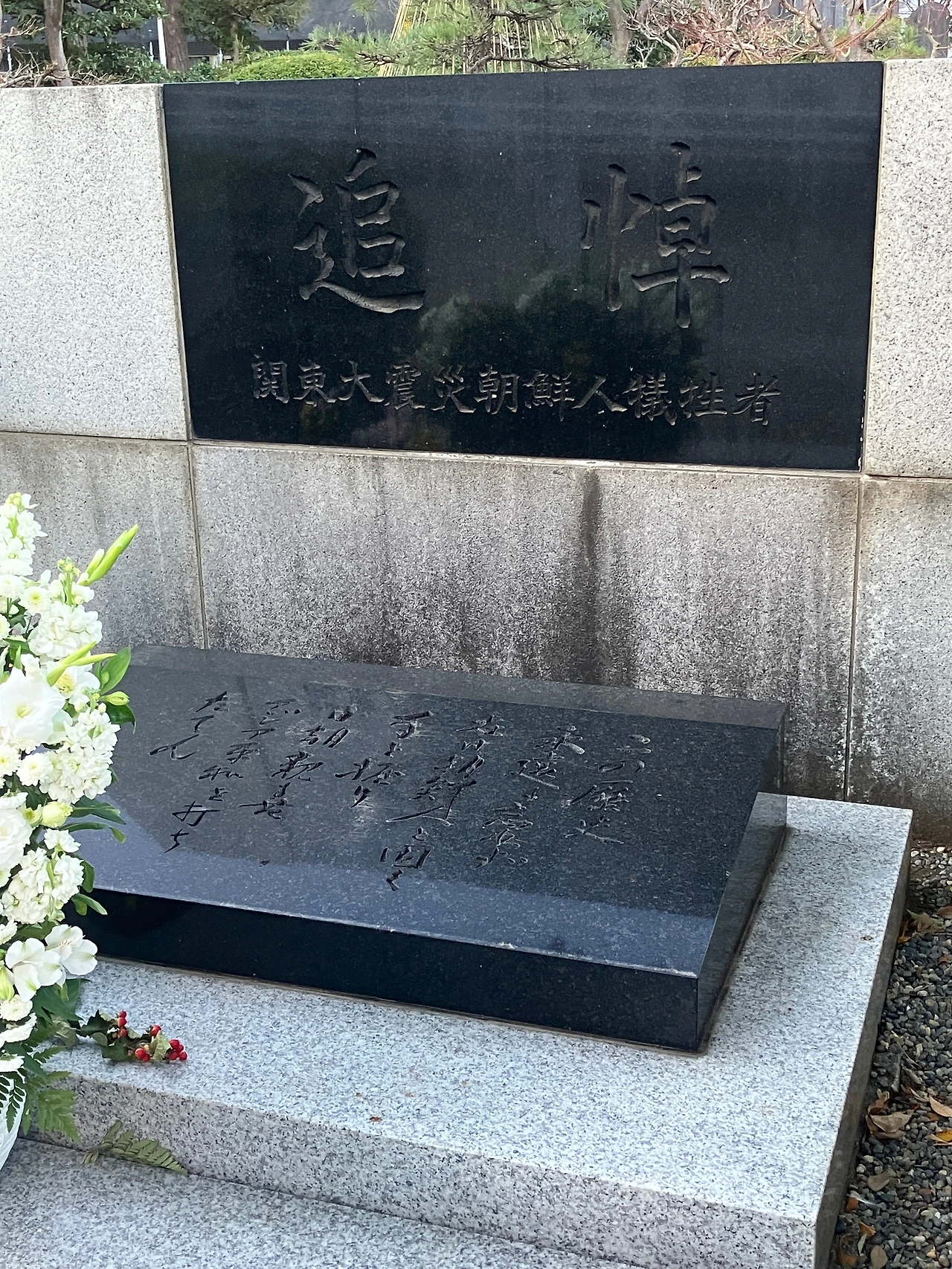 이번 도쿄 여행에서도 의미 있는 장소를 방문해보고 싶어 검색을 하다가 우연히 료고쿠 요코아미초 공원에 <간토 대지진 조선인 희생자 추도비>가 있다는 사실을 알게 되었다. 이 추도비는 1923년 간토 대지진 당시 유언비어로 인해 학살된 조선인들을 기리기 위해 1973년 세워진 비석이다. 매년 9월 1일 일본의 한 시민단체 주관으로 추도식이 열리는데 2025년에도 102주기 추모 행사가 거행되었다고 한다. (이 추도식이 열릴 때면 근처에서 우익단체들의 방해집회가 열리기도 한단다.)