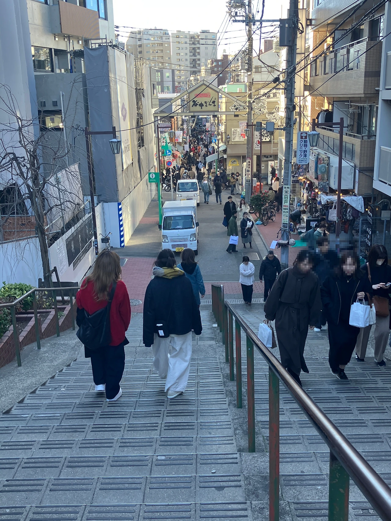 <연명원(延命院)> 플리마켓을 구경하고 나오자, 금세 <야나카 긴자 상점가>를 상징하는 <유야케 단단(저녁놀 계단)>이 나왔다. 계단 위에 서면 상점가 전경을 한눈에 보면서 아름다운 노을도 함께 볼 수 있는 명소로 알려져 있어서, 외국인 여행자들뿐만 아니라 다른 지역에서 놀러 온 현지인들도 사진을 찍기에 여념이 없었다.