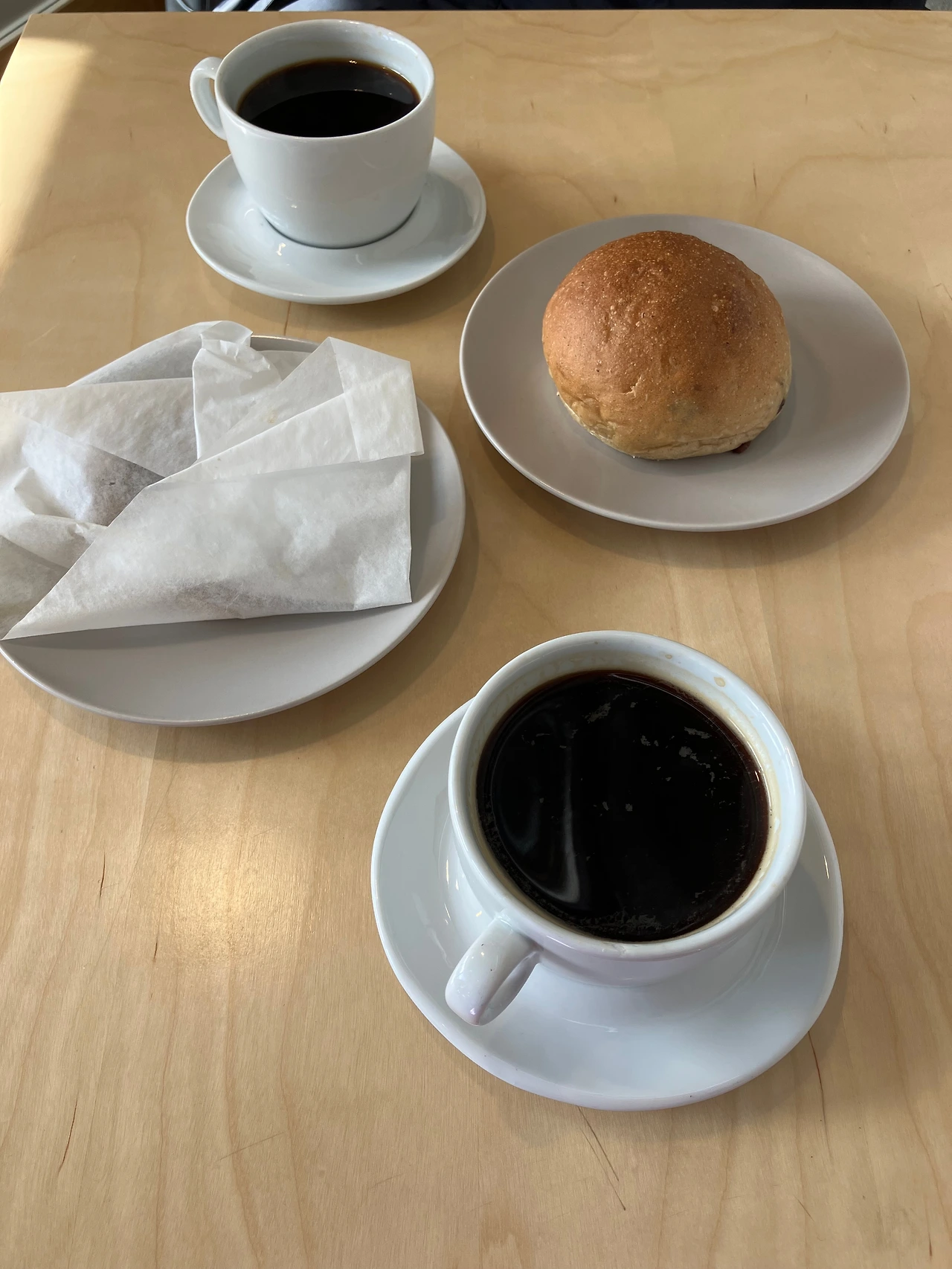 우리는 숙소에 돌아가서 편하게 먹기 위해 빵을 포장했다. 가게에서 사 온 빵을 커피와 함께 먹었는데, 크기도 꽤 크고 제대로 발효시킨 모양인지 맛도 부담스럽지 않아서 아침 식사로 먹기에 정말 제격이었다. 특히 아침에 갓 구워 나온 빵이니 맛이 없을 수가 없었다. 이 빵집에 대한 첫인상이 좋아서 결국 오슬로에 있는 동안 두 번을 더 가게 되었다. 두 번째 방문 때에는 커피를 함께 주문해서 가게에 앉아서 먹었는데, 주말이라 그런지 느긋하고 조용하게 시간을 보낼 수 있어서 좋았다.