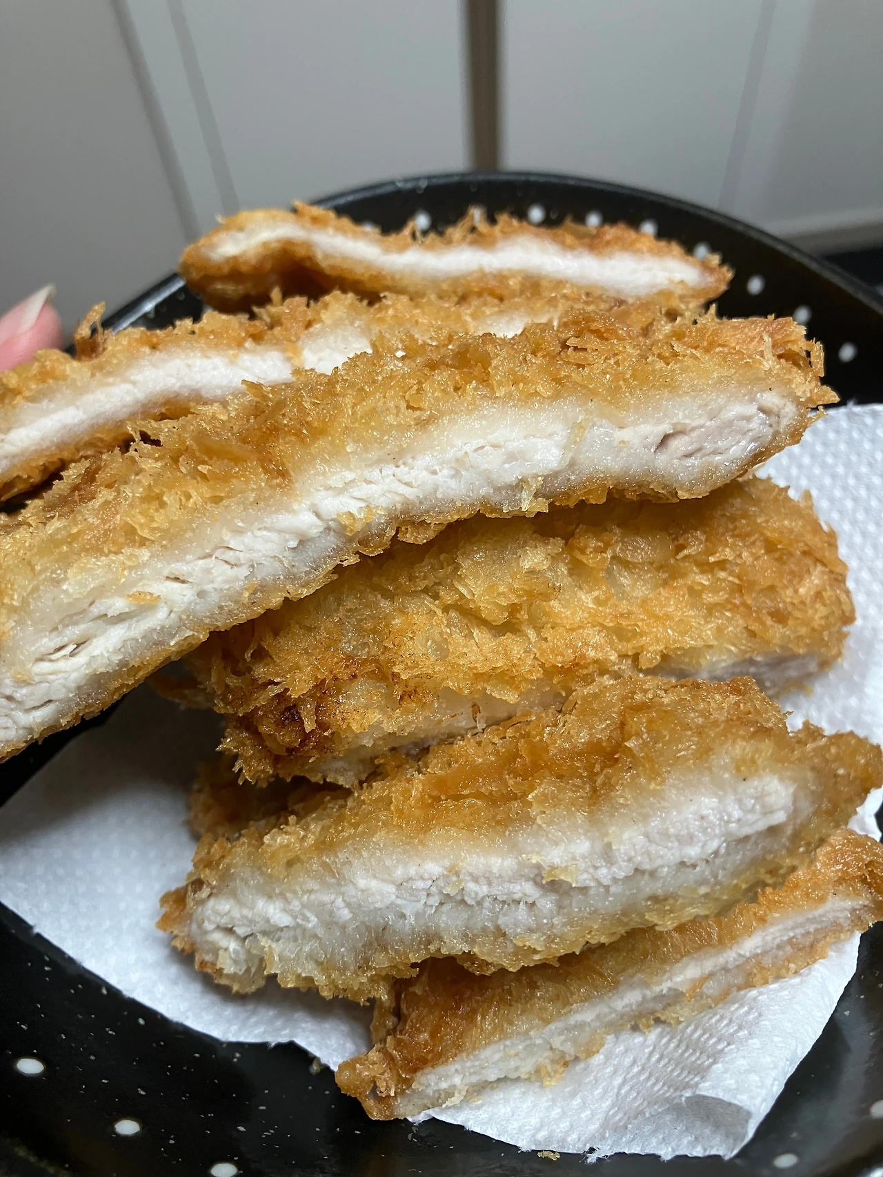 <바로 수제 돈까스>의 메뉴판을 보니 돈가스 이외에도 치킨가스, 생선가스 등의 메뉴가 있었고, 다양하게 조합해서 세트로 구매할 수가 있었다. 전반적으로 가격이 매우 착했는데, 성인 손바닥보다 조금 큰 돈가스 1장에 3,000원이었다. 다른 메뉴들도 있었지만 첫 방문이었던 나는 돈가스로 4장(11,000원)을 주문하고 가게 앞에서 튀겨질 때까지 기다렸다. 10-15분쯤 후에 갓 튀긴 돈가스를 포장해서 돌아왔다. 가게에 먹을 수 있는 공간이 없었기 때문에 집에 돌아오는 길에 돈가스가 식는 건 조금 아쉽긴 했다.