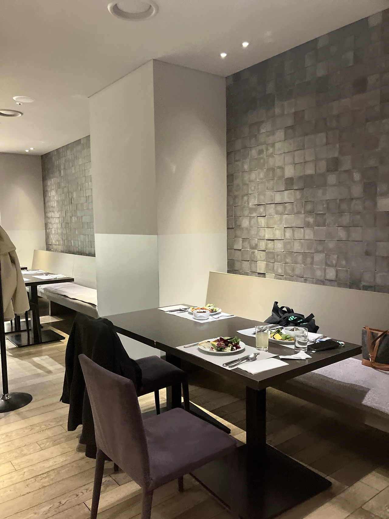 우리는 네이버를 통해서 예약을 하고 갔는데, 네이버로 미리 예약을 하고 가면 식사 총금액의 10% 할인이 되기 때문이다.(주말 런치뷔페 34,000원) 네이버 예약이 마감되어 있어도 전화를 하면 할인은 받지 못해도 예약은 할 수 있는 것 같았다. 런치 운영시작은 오후 12시부터이고 마감은 오후 2시 30분까지라 오후 12시에 맞춰서 방문했는데, 레스토랑 앞에서 기다리다가 예약자 이름을 확인하고 입장했다. 생일모임이라 좋은 자리로 부탁드렸더니 안쪽 편한 자리로 안내를 해주셔서 좋았다.