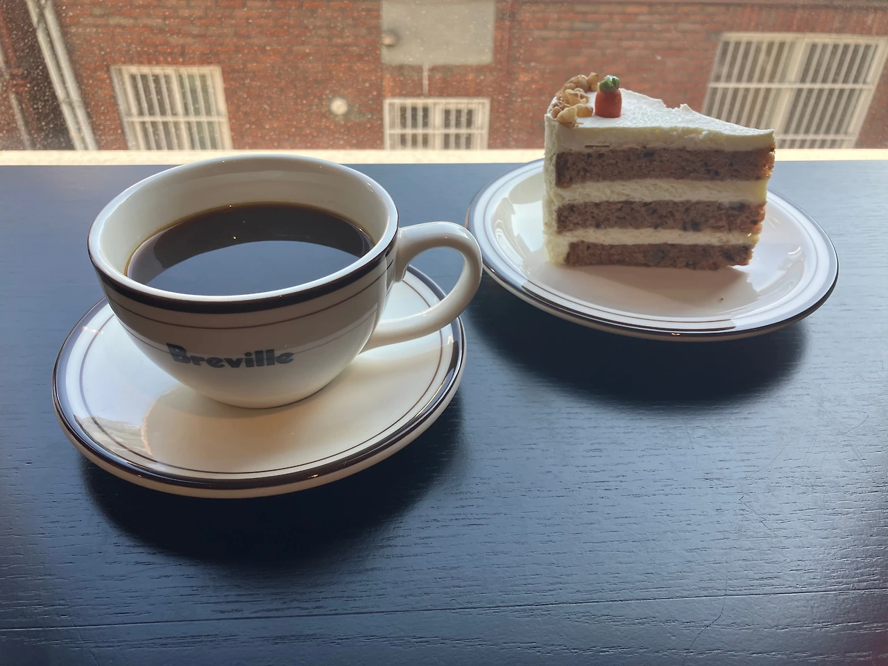 친구들과 <소바마에니고>에서 식사를 하고 커피를 마시러 바로 옆에 있는 <브레빌 카페>에 갔다. 주말의 성수 분위기와는 사뭇 다른 한적한 분위기였기 때문이다. 이 카페는 호주의 프리미엄 가전 브랜드 '브레빌(Breville)'의 제품들을 직접 체험해 볼 수 있는 곳이라고 하는데, 커피만 마셔도 괜찮았다. 1층에서 주문을 하고 2층에서 커피를 마실 수 있었다. 나는 산미 있는 원두의 아메리카노(5,500원)를 고르고, 다 같이 먹을 당근케이크(정확하진 않지만 7,000원쯤 한 듯)도 하나 주문을 했다. <브레빌 카페>는 부산의 <블랙업 커피(Blackup Coffee)>의 원두를 사용하고 있었는데, 부산에서 가 본 적이 있는 카페라서 괜히 반가웠다.