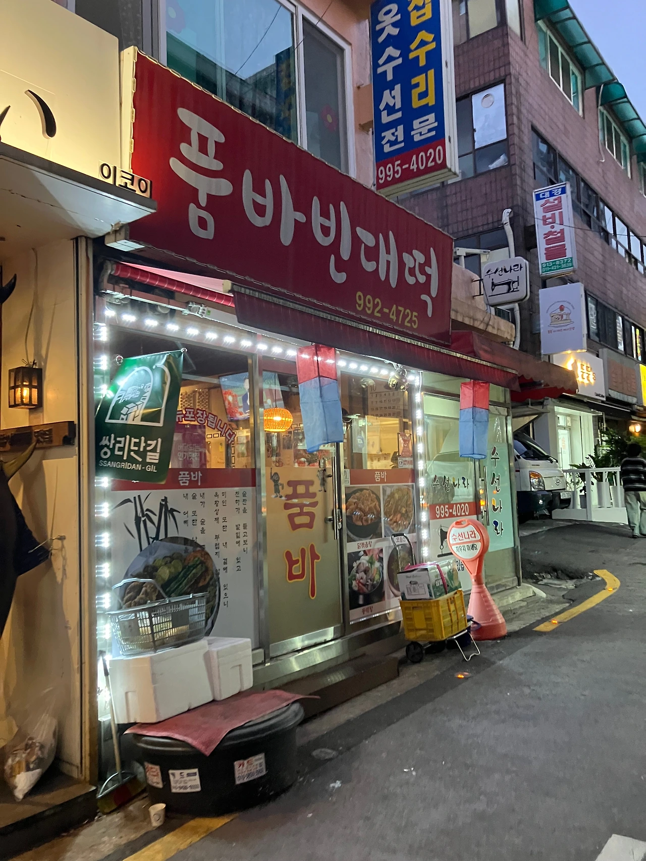 쌍문동 쌍리단길은 예전부터 아기자기하고 맛있는 가게들이 모여 있기로 유명한 동네이다. 나도 가끔 맛있는 것을 먹으러 쌍리단길에 가곤 했지만, 최근 날씨가 쌀쌀해지면서 부쩍 식욕이 생겨 오랜만에 다시 찾았다. 이번에 우리의 행선지는 이미 동네 주민들 사이에서 닭볶음탕 맛집으로 입소문이 자자한 쌍리단길 인근의 <품바빈대떡>이었다. 메인 골목에서 살짝 벗어난 곳에 위치한 이곳은 외관에서부터 오래된 맛집의 포스가 느껴지는 곳이었다.