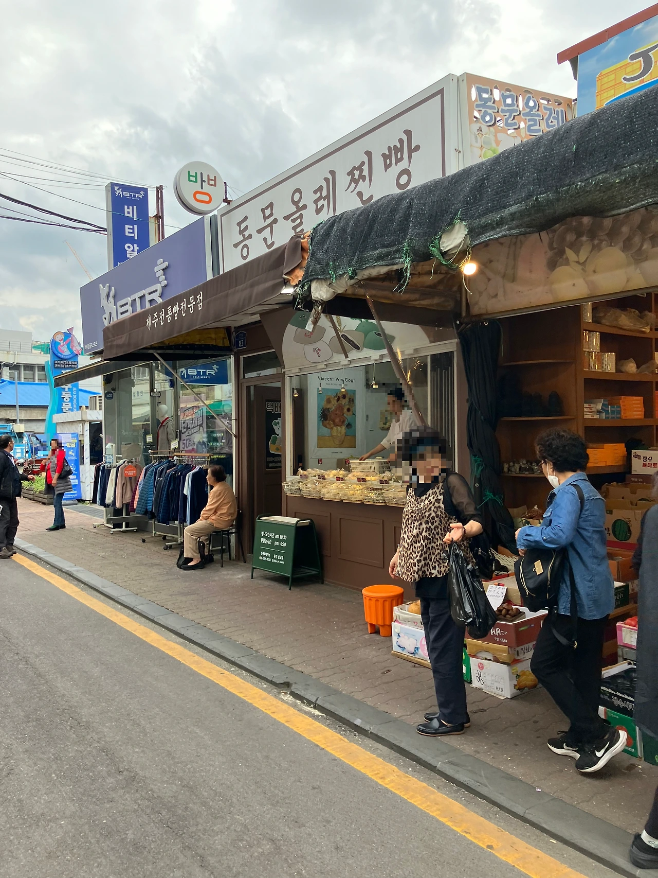 음식은 금방 금방 나왔고 금세 먹을 수 있었는데, 어릴 적 시장에서 먹던 그 떡볶이 맛, 순대 맛, 튀김 맛이라 평범한 편이었다. 내가 좋아하는 쌀떡에 더해진 떡볶이가 맛은 있었지만 개인적으로 웨이팅까지 해서 먹을 정도는 아니라고 할까? 아무래도 붐비는 사람들을 보고 괜스레 기대치가 높아졌던 것 같다. 떡볶이 한 그릇을 하고 보리빵을 사서 입가심(?)을 하기로 했다. <동문시장>에 갈 때 들르는 빵집이 있는데 <동문올레찐빵>이다. 동문시장 바깥쪽에 있는 이 빵집 보리빵을 개인적으로 좋아해서 보리빵이 먹고 싶어지면 이곳으로 간다.