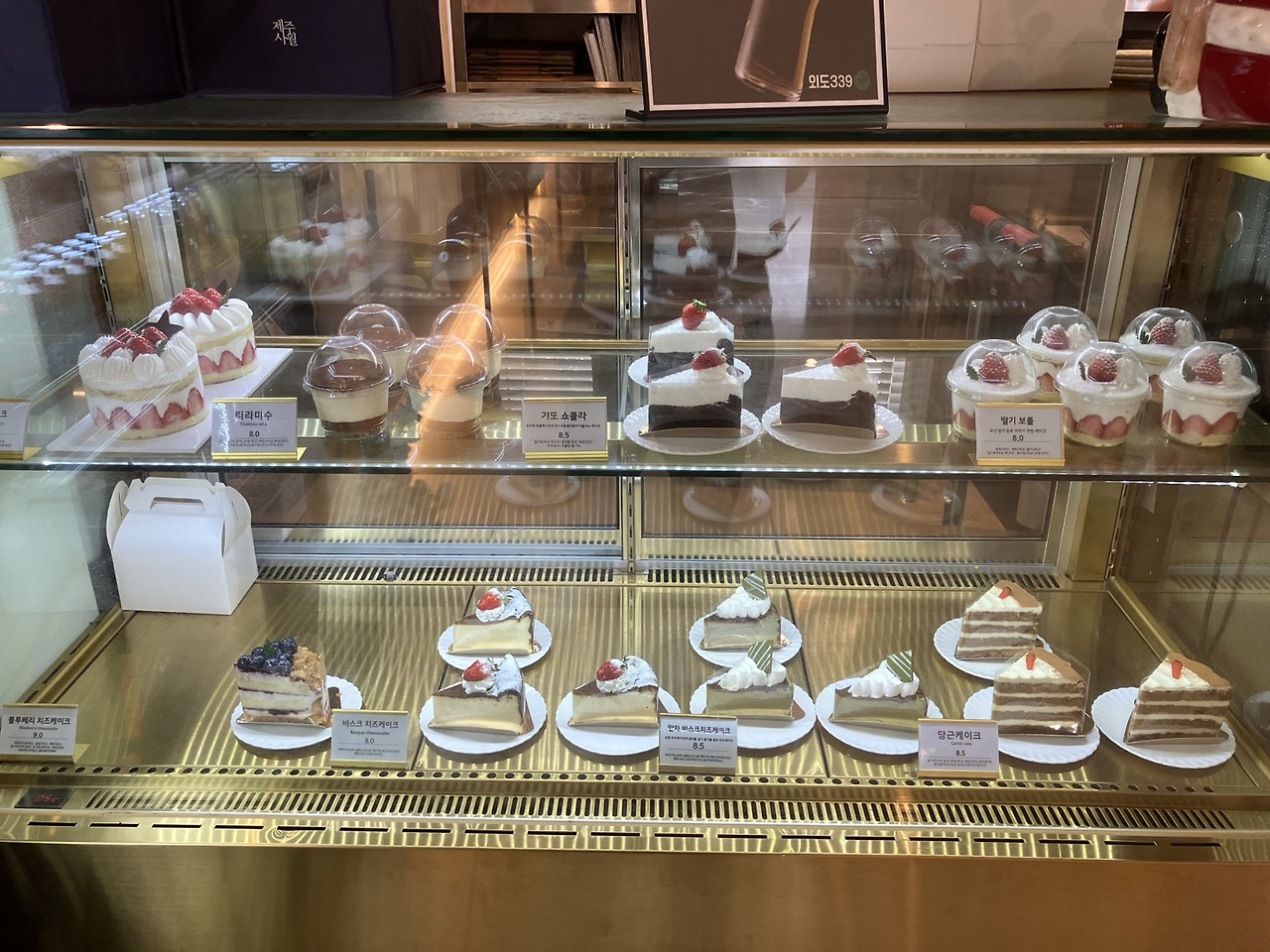 <외도339>는 '외도초등학교' 버스 정류장에 내려 바다 쪽으로 5분 정도 걸으면 쉽게 찾을 수 있었다. 날씨가 좋은 날에는 야외 좌석에 앉아서 바다를 보며 카페를 즐길 수 있는데, 내가 갔던 날은 날씨가 흐렸으니 불가능한 옵션이었다. 카페는 야외좌석과 1, 2층 실내 좌석으로 많은 인원을 수용할 수 있는 규모였다. 흐린 날씨라 카페에는 많은 사람들이 시간을 보내고 있었다. 1층 한쪽에는 베이커리답게 빵과 디저트가 진열되어 있었고, 메뉴판에는 음료를 비롯해서 식사 메뉴들도 준비되어 있었다. 빵의 종류는 많지 않았지만 출출한 배를 채우기엔 충분했다.