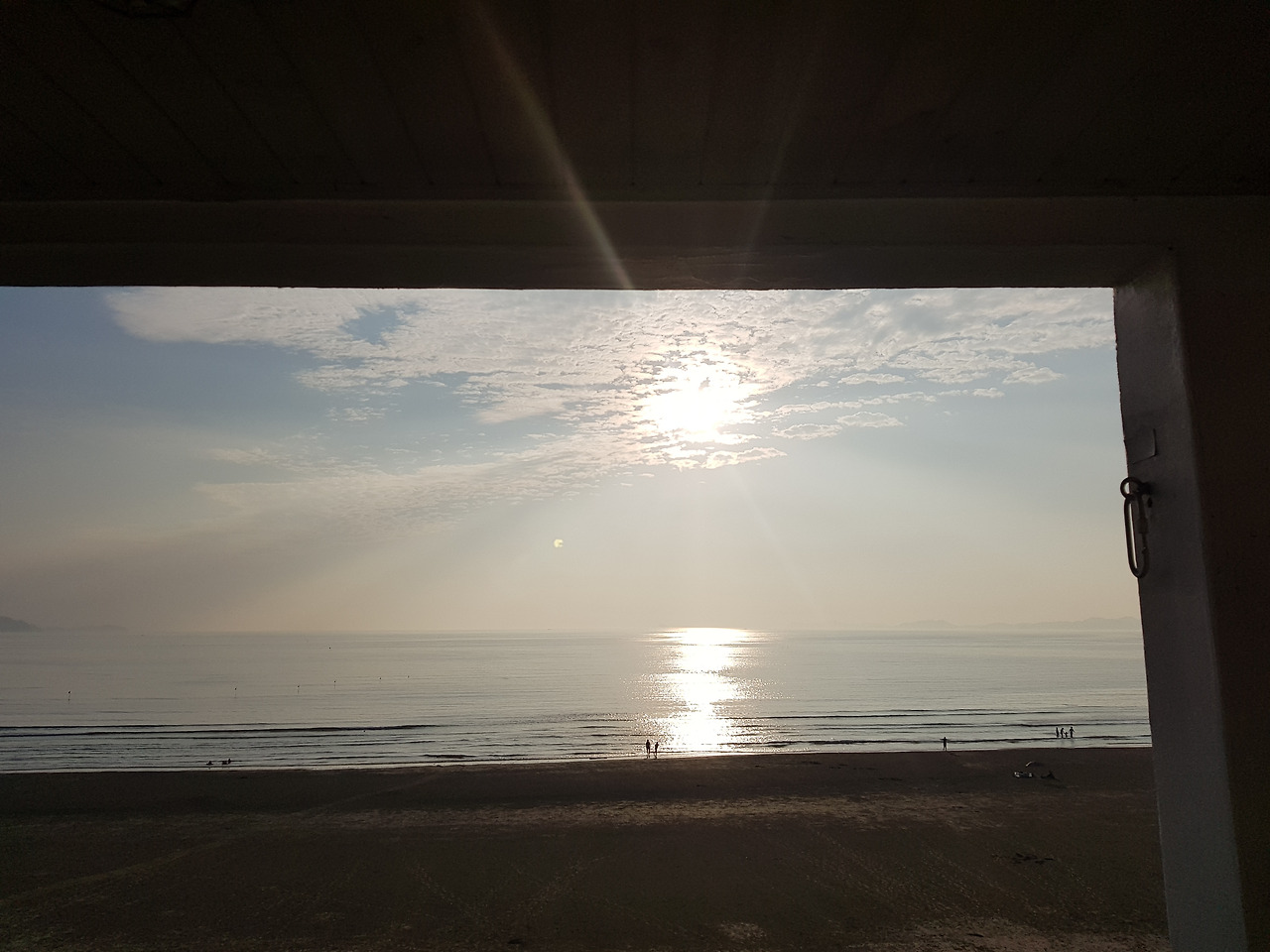 저녁이 되니 붉은빛이 바다를 물들입니다. '와~ 예쁘다' 감탄하면서 일몰을 구경했어요. 오늘 하루도 잘 쉬어갑니다. 감사합니다.