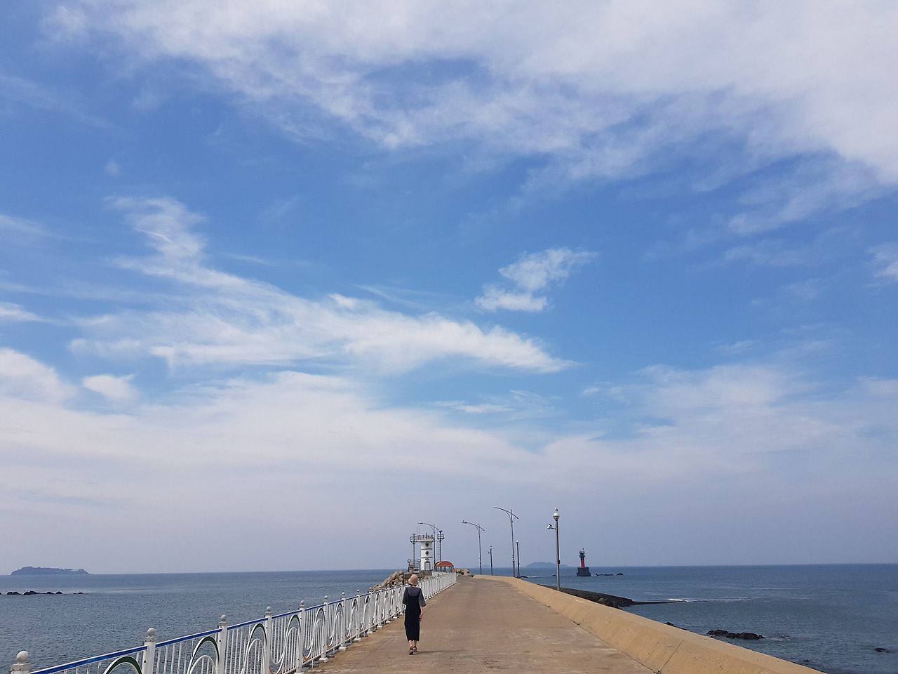 다음날 잠깐 편의점을 가려고 나왔다가 우연히 방포대를 찾았어요. 사람도 없고, 풍경도 예쁘고.. 무엇보다 하늘이 정말 예뻐서 사진을 안 찍을 수가 없었답니다. 잠시 한번 하늘을 보고 바다를 보며 자연을 만끽하는 시간을 가졌어요.