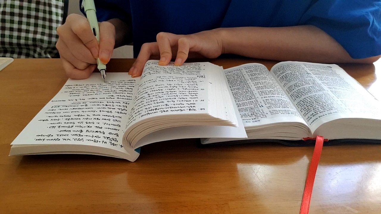 아침에 일어나서 청소하고 침대 정돈을 한 후, 제일 먼저 하는 성경필사. 요새는 오래 하기 힘들어서 필사량을 줄였다. 구약 1장, 신약 1장. 양을 줄이니 부담도 없고 더 천천히 음미하며 필사하고 읽을 수 있어 좋다. 쓰는 게 재밌고 즐겁다.