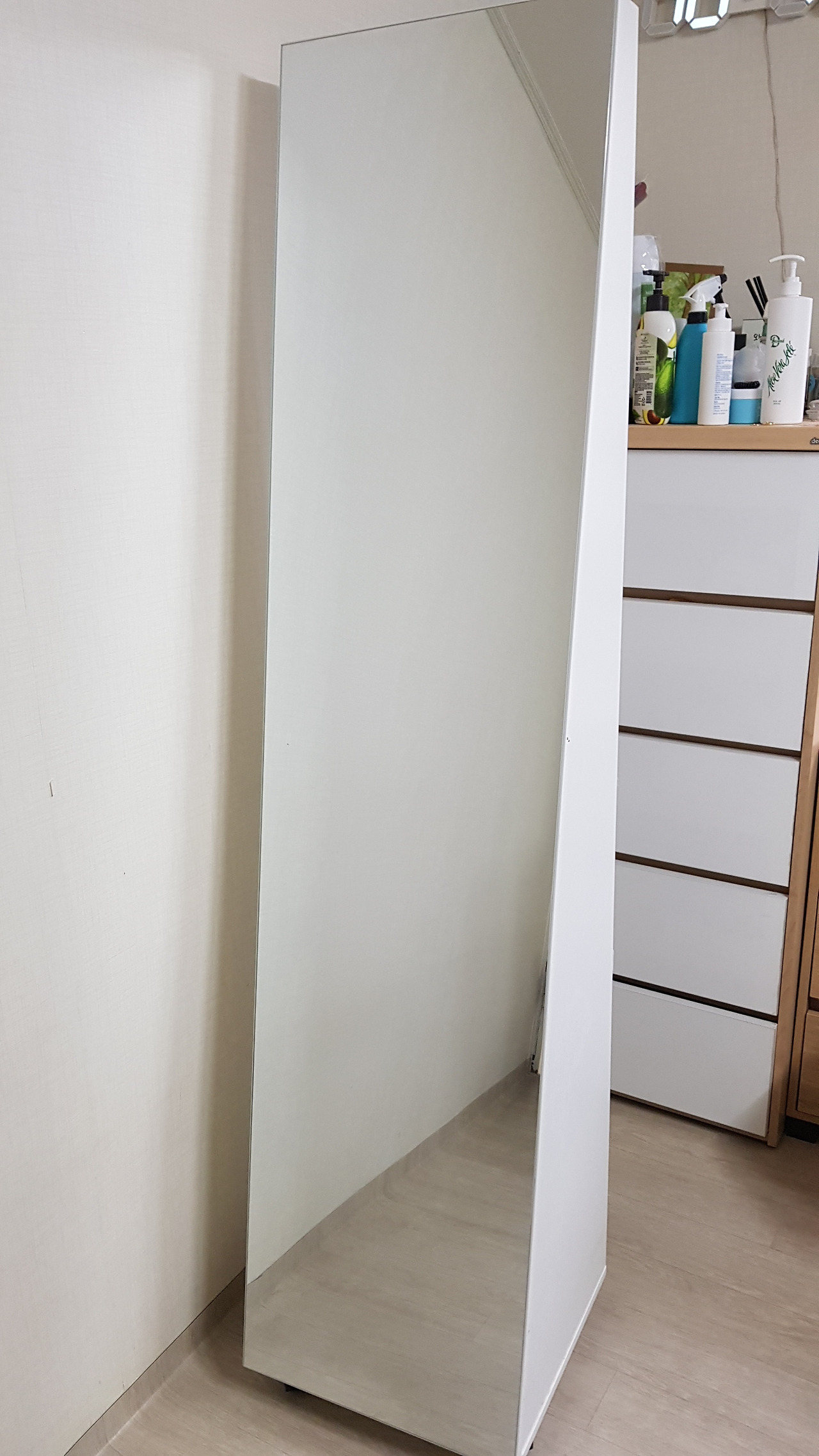 이 이동형 전신 거울 수납장도 만족스럽다. 이동식이라 공간 활용도 뛰어나고, 무엇보다 뒤에 수납할 수 있는 공간이 있어서 잡다구리한 것들을 깔끔하게 정리할 수 있어서 너무 좋다. (브랜드를 까묵)