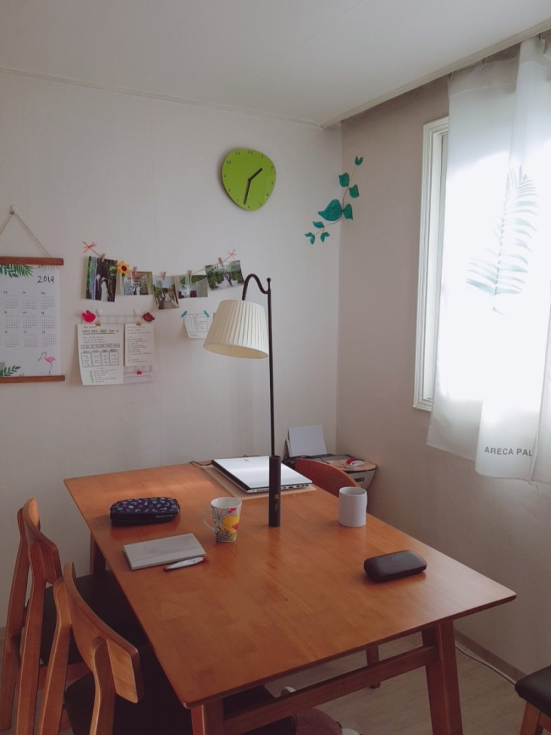 7. 소소한 포인트로 나만의 갬성 뽐내보기. 커튼이나 시계나 사진, 그림, 스피커, 식탁보 등으로 나만의 공간을 나만의 갬성으로 채워보기.