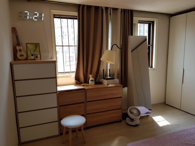 울 신혼집은 안방과 작은 방, 화장실 그리고 부엌 겸 거실로 (좁은 통로 같은) 이루어져 있다. 먼저 안방에 들어온 착한 가구들을 하나하나 살펴보면...