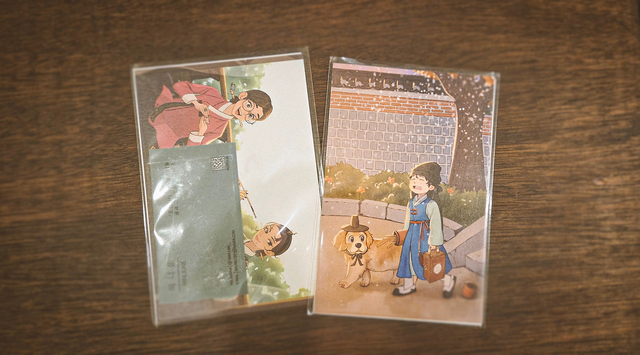 이런 애매한 자리가 몇 번 반복되다 보니, 약간의 스트레스와 함께, 나를 설명하는 게 굉장히 구차하고 장황해지고 있다는 생각이 들었다. 그래서 명함을 만들었다. 명함만 건네기에는 뭔가 아쉬워서, 내가 만든 일러스트 중 두 점을 골라 엽서로 제작했다. 생각보다 많은 수량이라, 가방에 넣고 다니며, 나를 소개해야 하는 자리 혹은 나를 어필해야 하는 자리에 꺼내어 나눠드렸다.