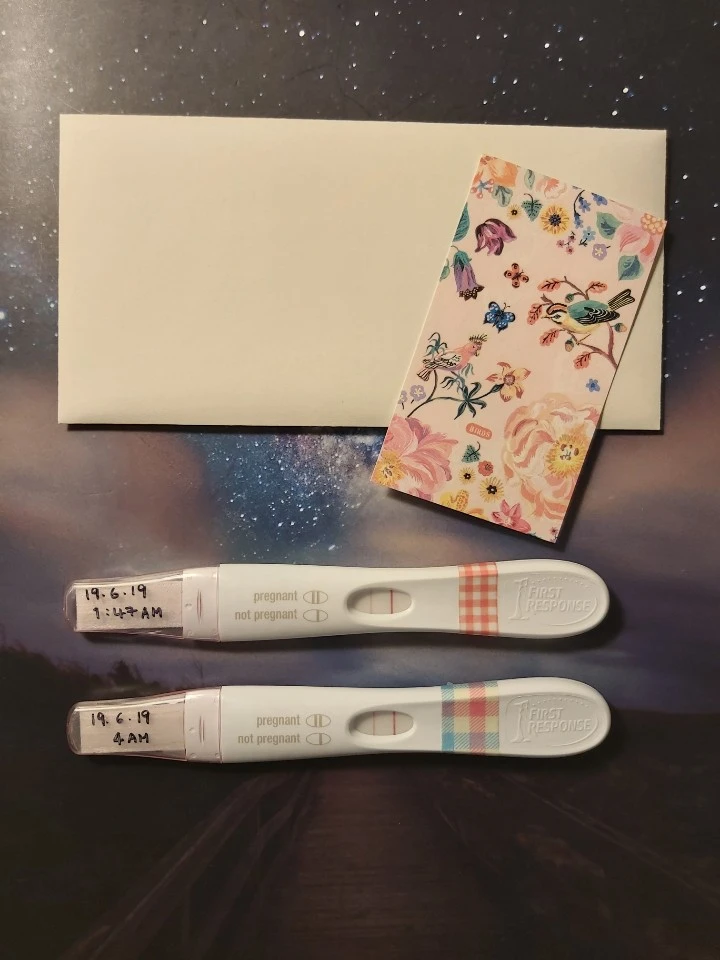 여전히 믿기지가 않아서 테스트기를 한참 들여다봤다. 이 두 줄이 내 안에 생명이 생겼다는 의미라는 게 실감이 안 났다. 약 2주간 매일 궁금해하고 기다리던 결과를 막상 받아 드니 심장이 뛰고 얼떨떨했다.