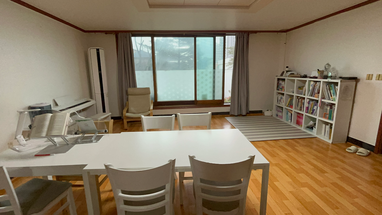 저녁 먹고 빠르게 정리하고 아이들과 식탁에 앉아 성경책을 읽고, 아이들의 공부를 봐주고 있다.