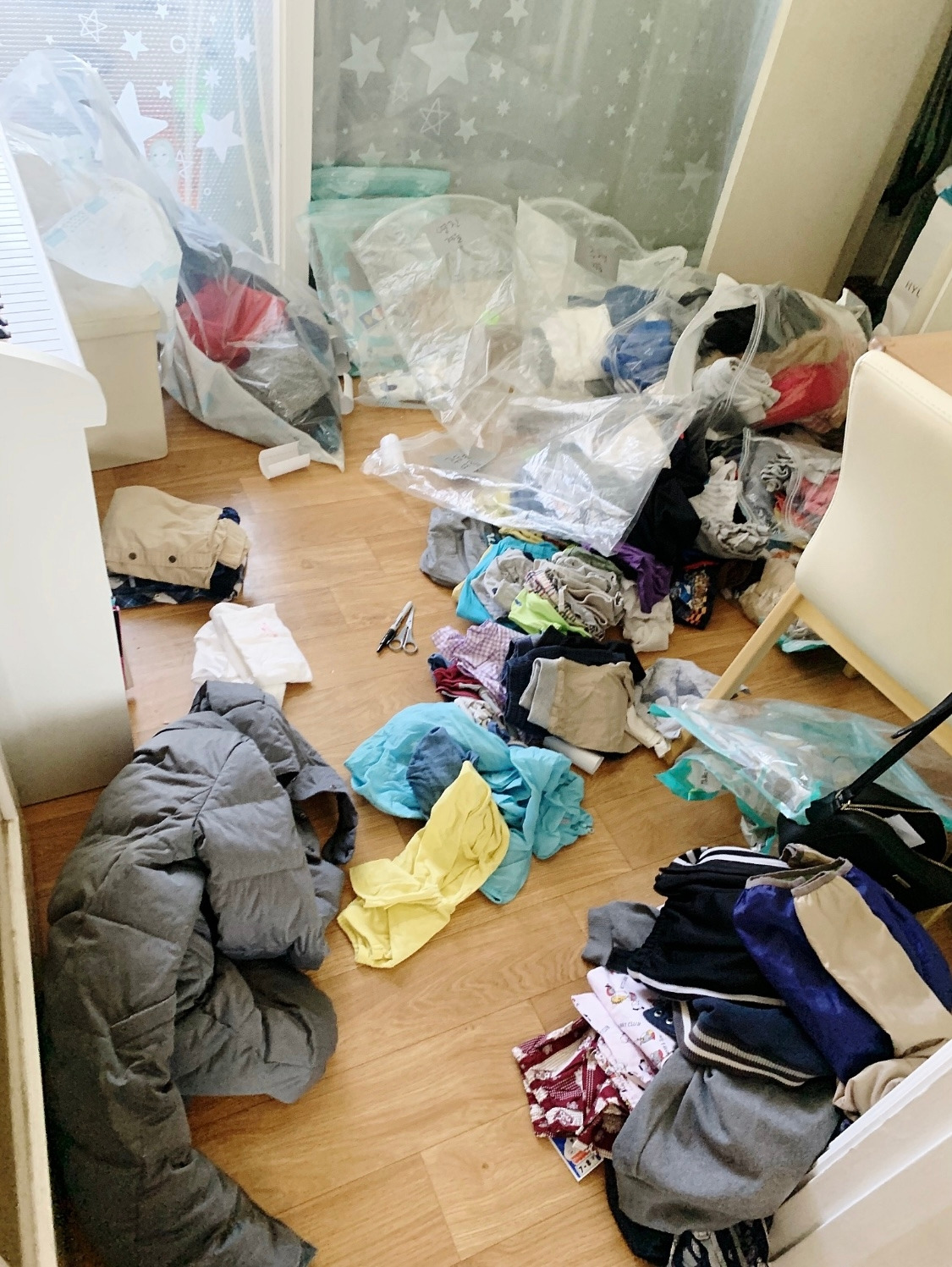 많은 옷들을 일단 다 꺼내고 압축팩에 '첫째 겨울, 둘째 여름'이라고 라벨링을 하기 시작했다.