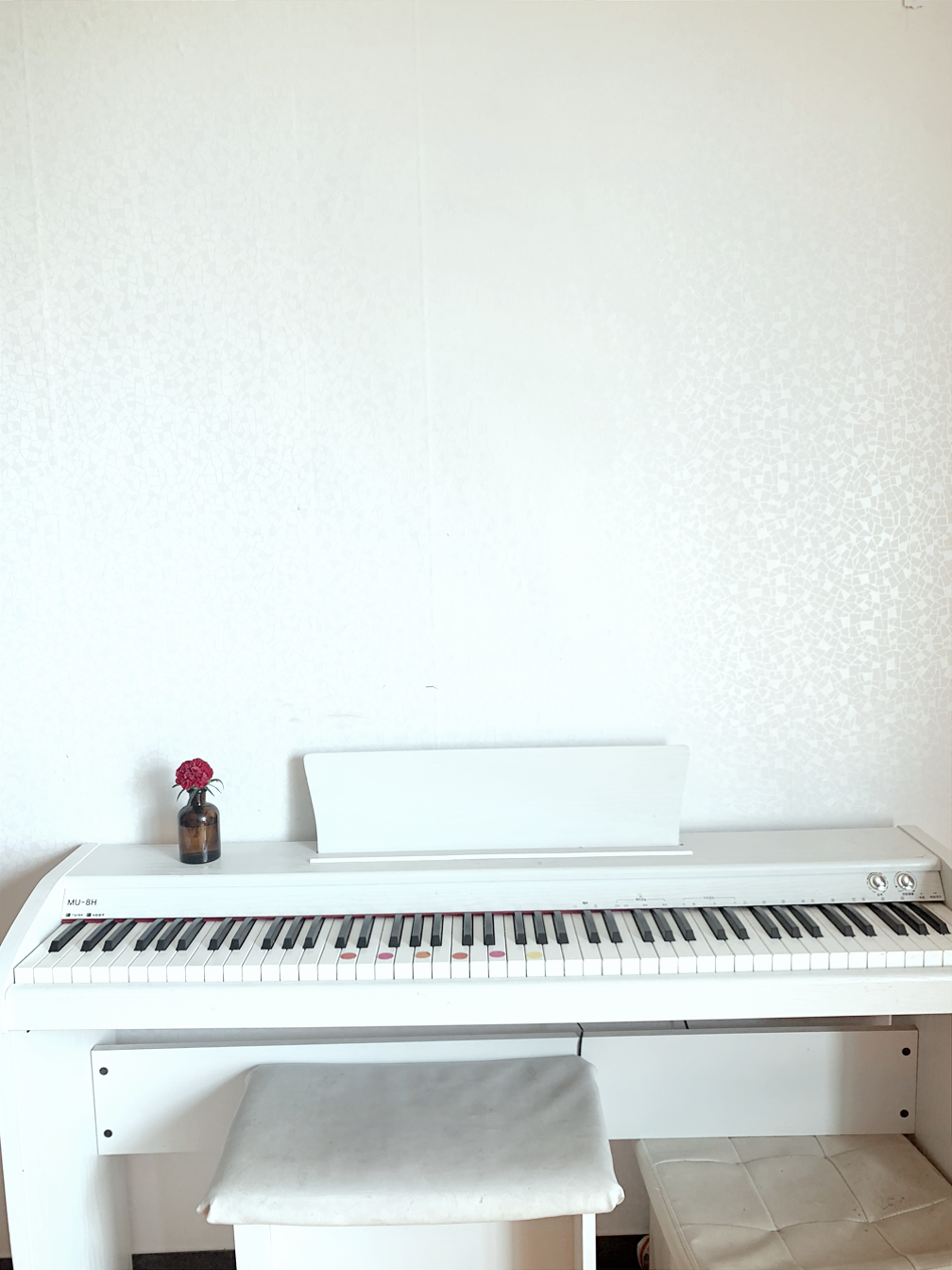 어린이집에서 만들어 온 어버이날 감사카드에 있던 꽃을 꺼내 화병에 넣어 피아노 위에 올려놓았더니 기분마저 화사해졌다.