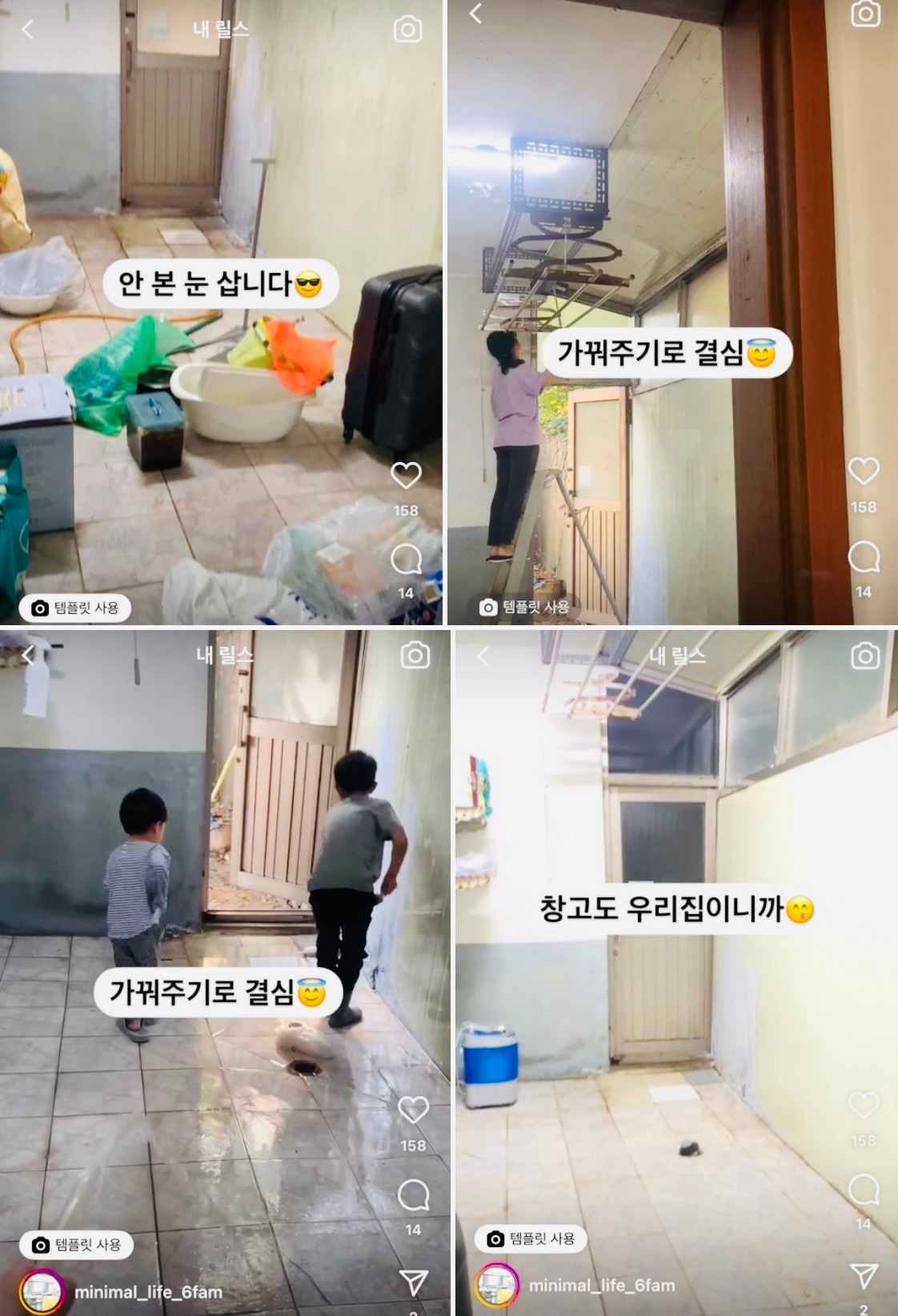 그날 이후 주말 독점육아 시간에 아이들과 창고문을 벌컥 열었다. ‘이제부터 이곳을 가꿔주기로 하겠습니다. ’라고 말하고 아이들과 청소도구를 들고 들어갔다. 아이들은 영문도 모른 채 일단 같이 그 안에 있는 짐들을 옮겼고, 같이 물을 틀고 밀대로 바닥을 밀기 시작했다. 사다리까지 동원해 창문도 닦아내고 벽도 닦았다. 그 안에 있던 짐들에 쌓인 먼지들도 털어가며 하루종일 창고에서 보냈다. 단지 생각하나 바꿨을 뿐인데 몸을 움직일 수 있었다. 놀이라 생각하고 아이들도 함께 했더니 청소 후 말끔해진 창고를 보며 함께 흐뭇해했다. 청소 후의 쾌감을 아이들도 맛보게 된 것이다. 창고도 우리 집이라 생각하고 가꿔주기로 했다. 그 작은 생각의 변화로 인해 우리 집 곳곳이 변화되기 시작했다.