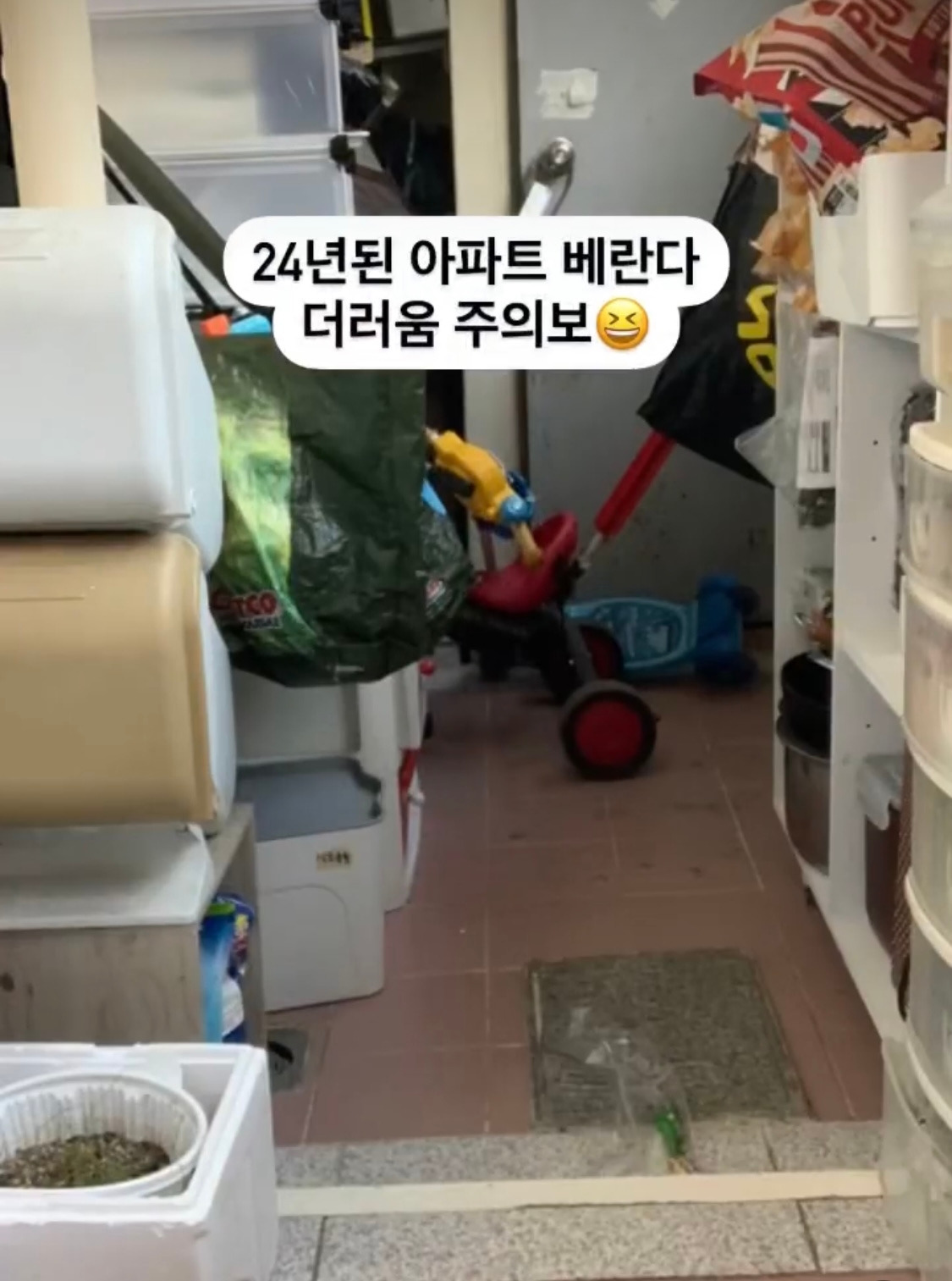 좁은 베란다 양 옆으로 많은 짐들이 테트리스하듯 빼곡하게 채워져 있었다. 뭐가 어디 있는지 모를 정도의 그야말로 혼돈의 카오스. 베란다를 비우는 것이 쉽지 않았다. 언제 쓸지 모르는 물건들이 많았기 때문이다.