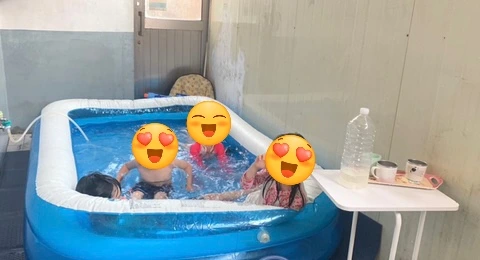 올여름 무더위가 시작되었는데 마당에서 물놀이를 언제 하냐는 아이들의 물음에 답을 할 수가 없었다. 마당에서 하기엔 뒤처리가 감당하기 어려울 것 같았기 때문이다. 창고에 수영장을 만들어주면 좋겠다는 생각이 들어서 수영장에 바람을 넣고 물을 받아 놀게 하였다. 아이들은 ‘보기 싫던 더러웠던 공간이 이렇게 재밌는 물놀이장이 될 줄 상상을 못 했다’고 하며 신나게 놀았다. 그전에 정리하고 청소해 놓았던 나를 스스로 칭찬해 줬다.