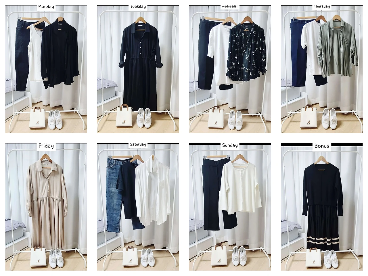 : 3개월 동안 옷, 액세서리, 주얼리, 신발을 포함해 33개의 아이템만을 착용하는 미니멀리스트 패션 챌린지