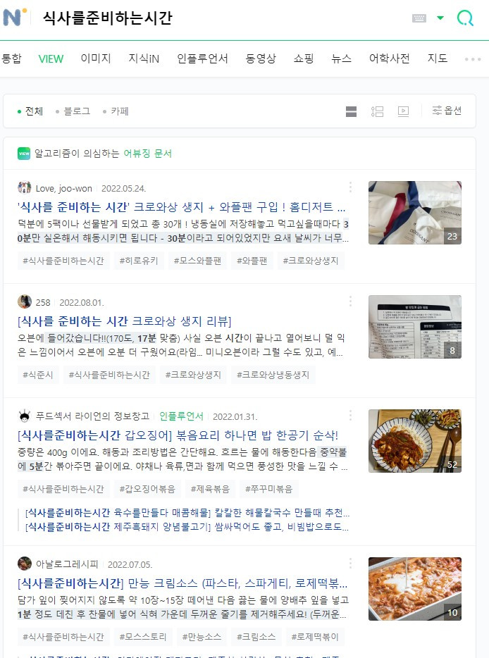 다먹어라이언은 '식사를준비하는시간' 과 '모스스토리' 키워드로 상위노출을 이끌어냈고, 실사용하면서 아쉬운점이나 개선할 점들을 전달했다. 최근에는 식사를준비하는시간과 협업하는 크리에이터 모스스토리님과 만남을 통해 함께 협업할 꿈을 꾸고 있다.