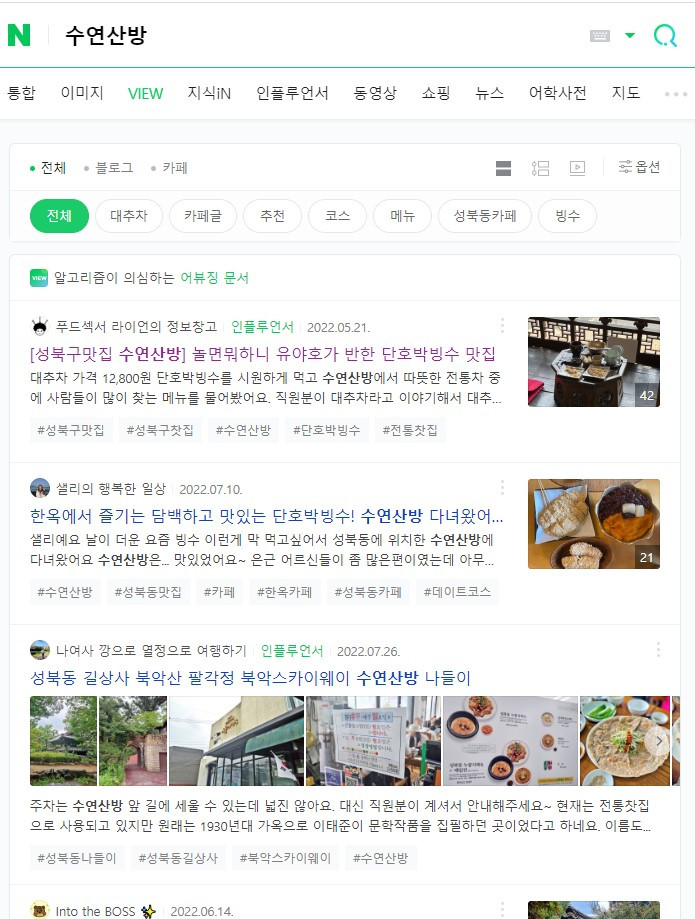 4. 8월28일까지 수연산방 네이버 검색결과 1위에 포스팅 노출 중