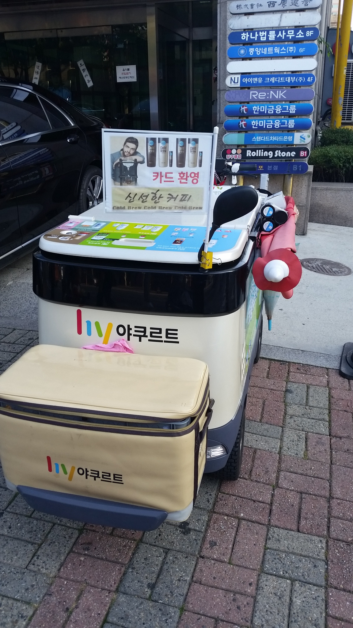 길을 가다 야쿠르트 아줌마의 카트를 마주친다.