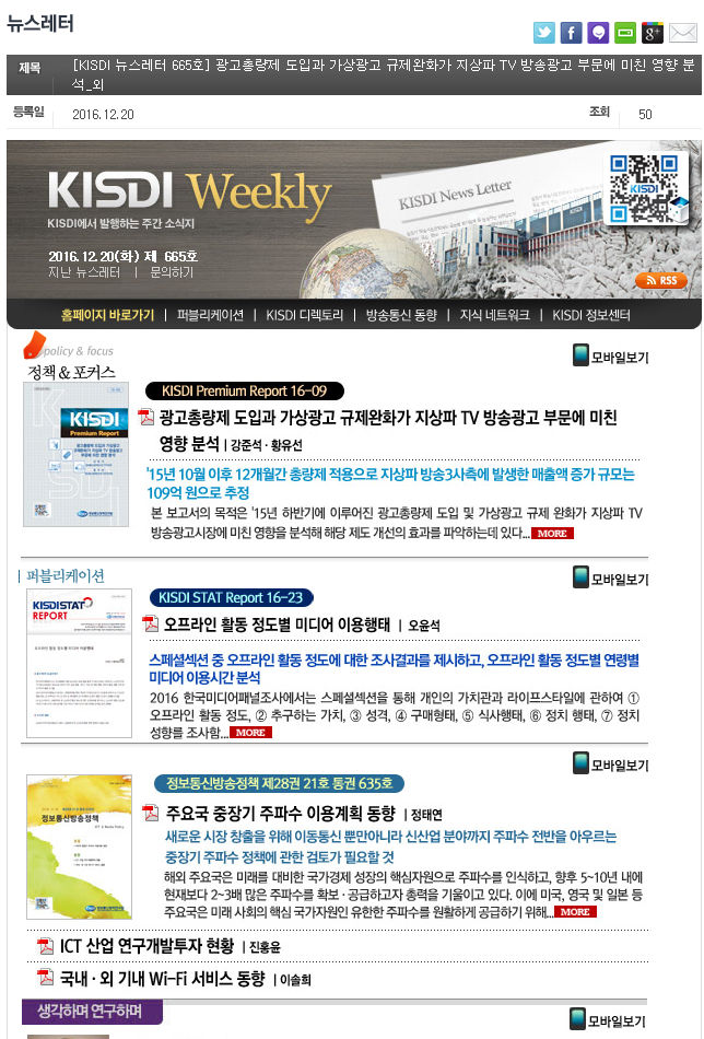 스마트 미디어에 관심이 있다면, 방송통신위원회와 정보통신정책연구원 사이트 Bookmark 필수.